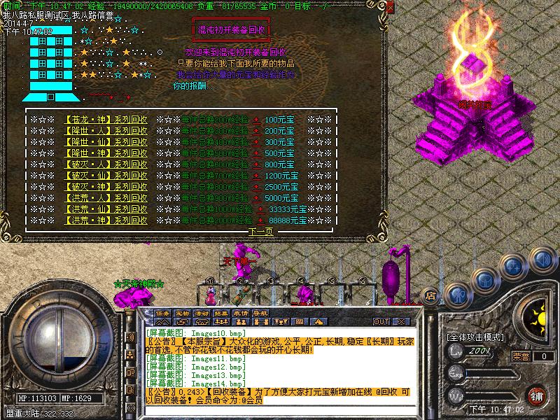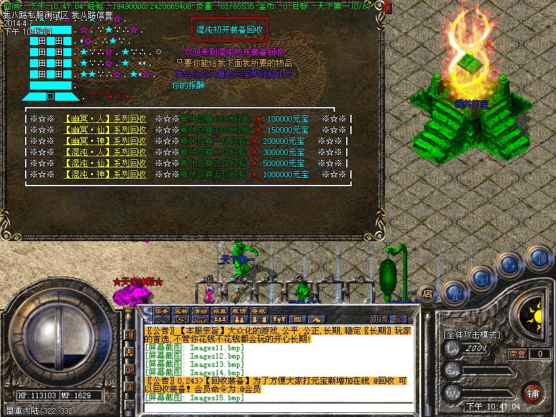 我八路传奇一条龙为你提供传奇开区版本亲测图,在这里你可以定制传奇一条龙套餐,还可以学习传奇一条龙开区的经验和知识,并由专业技术员为您提供“一对一”的售后服务,说到做到才是足于传奇一条龙开区工作室的根本。