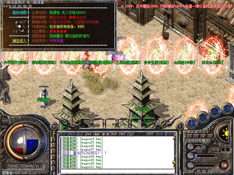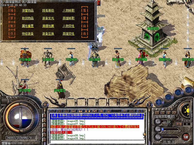 我八路传奇一条龙为你提供传奇开区版本亲测图,在这里你可以定制传奇一条龙套餐,还可以学习传奇一条龙开区的经验和知识,并由专业技术员为您提供“一对一”的售后服务,说到做到才是足于传奇一条龙开区工作室的根本。