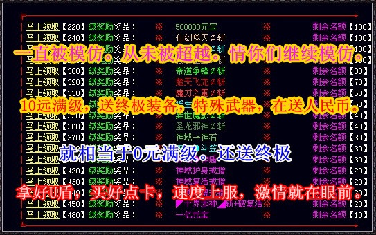 我八路传奇一条龙为你提供传奇开区版本亲测图,在这里你可以定制传奇一条龙套餐,还可以学习传奇一条龙开区的经验和知识,并由专业技术员为您提供“一对一”的售后服务,说到做到才是足于传奇一条龙开区工作室的根本。
