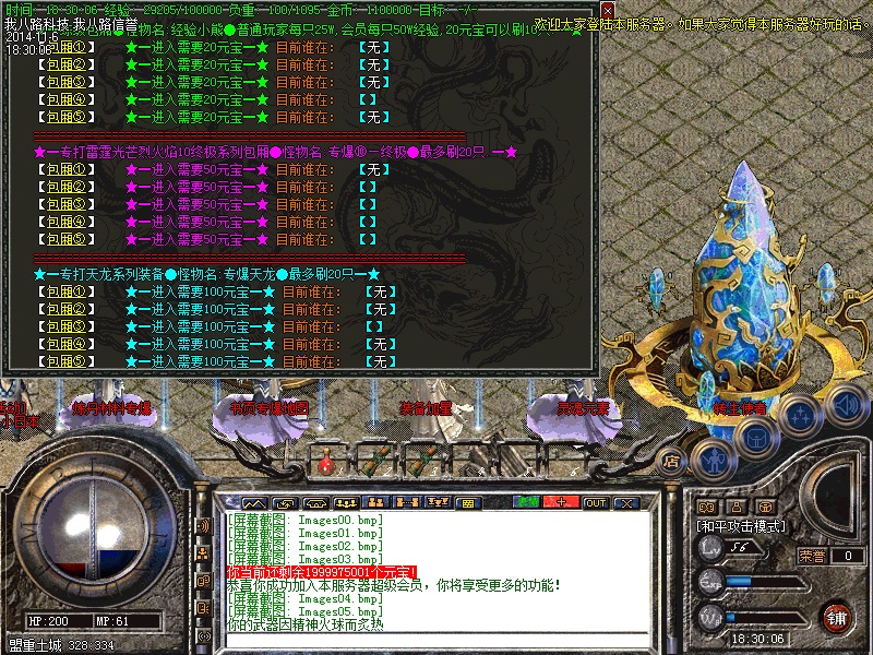 我八路传奇一条龙为你提供传奇开区版本亲测图,在这里你可以定制传奇一条龙套餐,还可以学习传奇一条龙开区的经验和知识,并由专业技术员为您提供“一对一”的售后服务,说到做到才是足于传奇一条龙开区工作室的根本。
