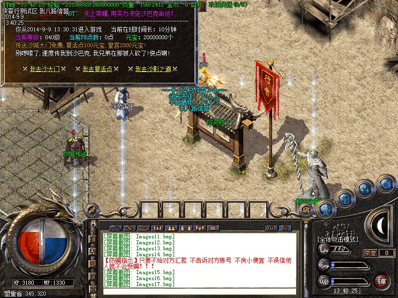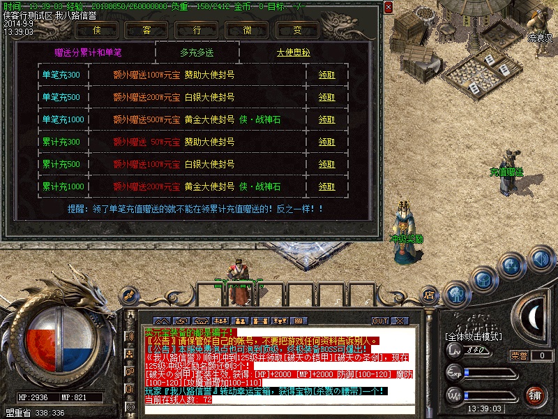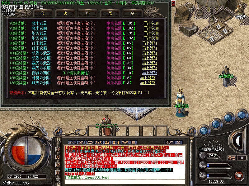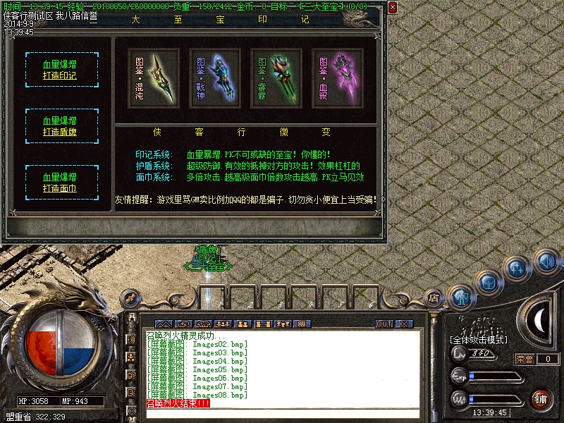 欢迎来到传奇开区一条龙独家侠客微变封挂版本,本服全球仅此一家!坚决打击一切外挂(发现暗杀,外挂吃药,加速,脱机挂机),一律删号封IP。所有装备均可在游戏中获得,爆率超高,BOSS爆终极!请不要相信游戏中任何,出售元宝装备的,游戏中说自己是管理卖元宝装备的都是骗子!保管好自己的帐号,不要把游戏任何资料告诉别人。免费泡点也可泡到顶级,终极装备BOSS可爆出.游戏中骂GM说老区卖比例加QQ的都是骗子!请勿贪小便宜上当受骗!只要不给对方汇款 不告诉对方账号 不贪小便宜 不误信他人就不会受骗!传奇开区一条龙不会要求玩家汇款。唯一充值渠道:官方网站充值!记住天下没有免费的午餐.不贪小便宜.多留个心眼.绝对不会上当受骗。