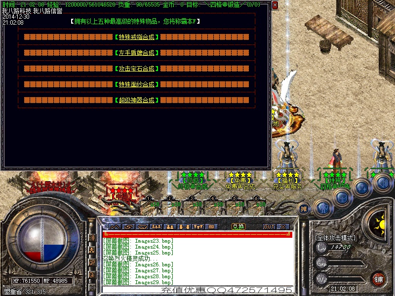 我八路传奇一条龙为你提供传奇开区版本亲测图,在这里你可以定制传奇一条龙套餐,还可以学习传奇一条龙开区的经验和知识,并由专业技术员为您提供“一对一”的售后服务,说到做到才是足于传奇一条龙开区工作室的根本。