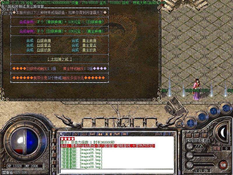游戏无GM管理,元宝比例 短信1:10000 点卡送%80 网银送%100  请到传奇一条龙官网充值。新区开放2天后攻城 新区奖励200W元宝,老区100W元宝 激情无限,合区只是激情的开始!点不了NPC或者进地图和泡点房自动回城的请小退上线!发现在服里喊黄字找GM谈比例一律直接封号处理!