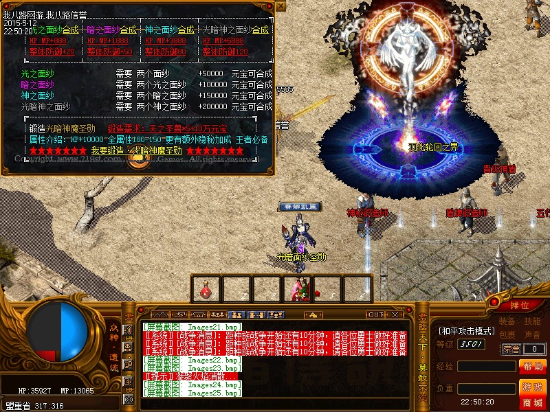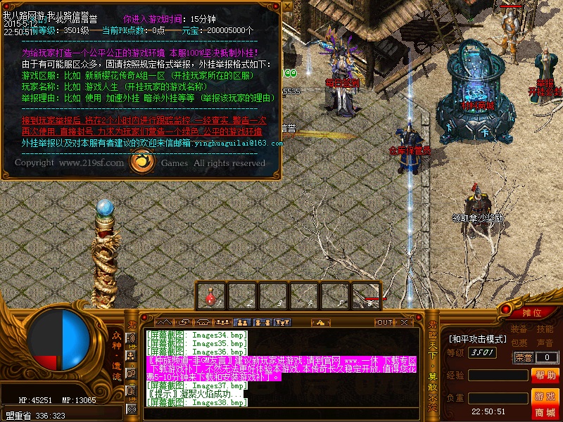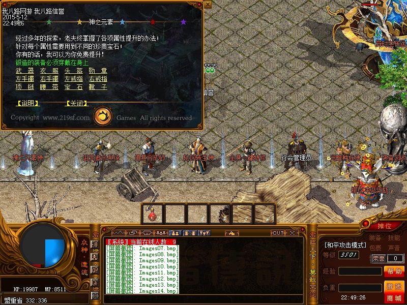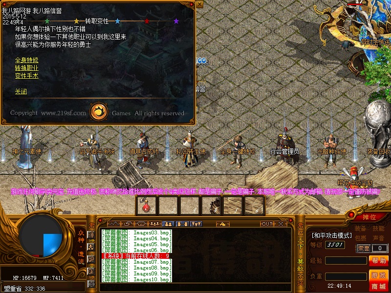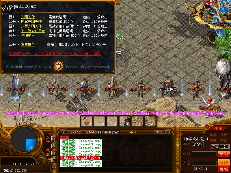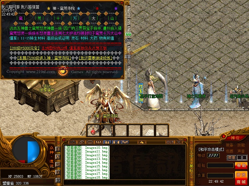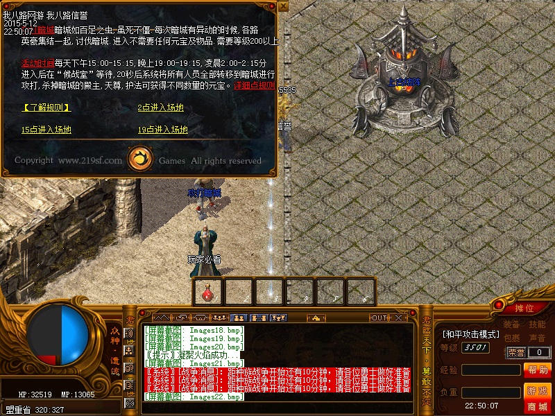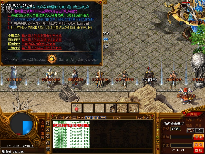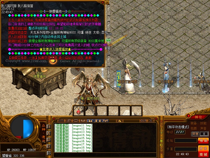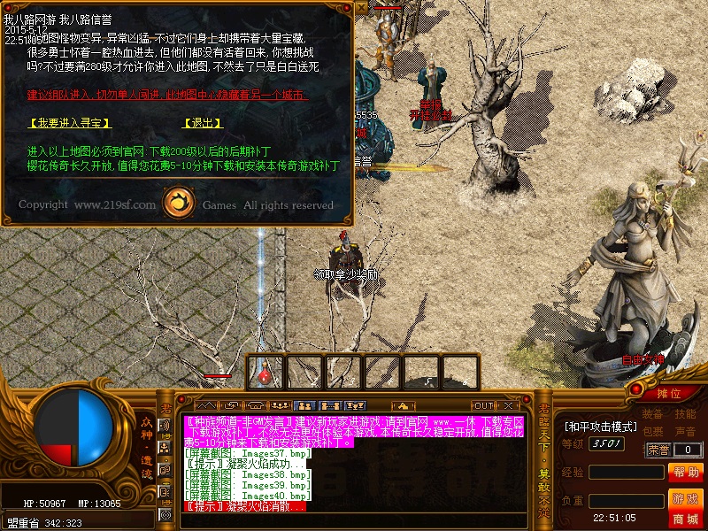 欢迎来到传奇私服一条龙新版新樱花传奇,上线自动赠送盾牌和印记,新手起步毫无压力,传送石地图都可以打,更加容易的向高手行列冲击。每天下午的3点-4点.7点-8点.11-12点会开3次(种族战场),玩家自己手动跑到100-100的坐标,里面有大量经验,元宝喷射!更不要错过土城砍猪点每半个小时的活动怪物,甚至可以爆到绝世装备哦!各大活动怪物爆率超高,不容错过!