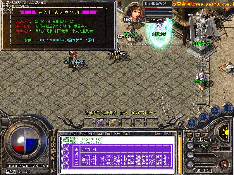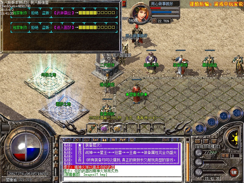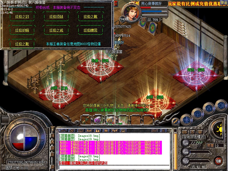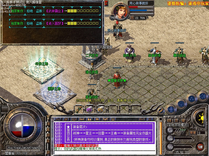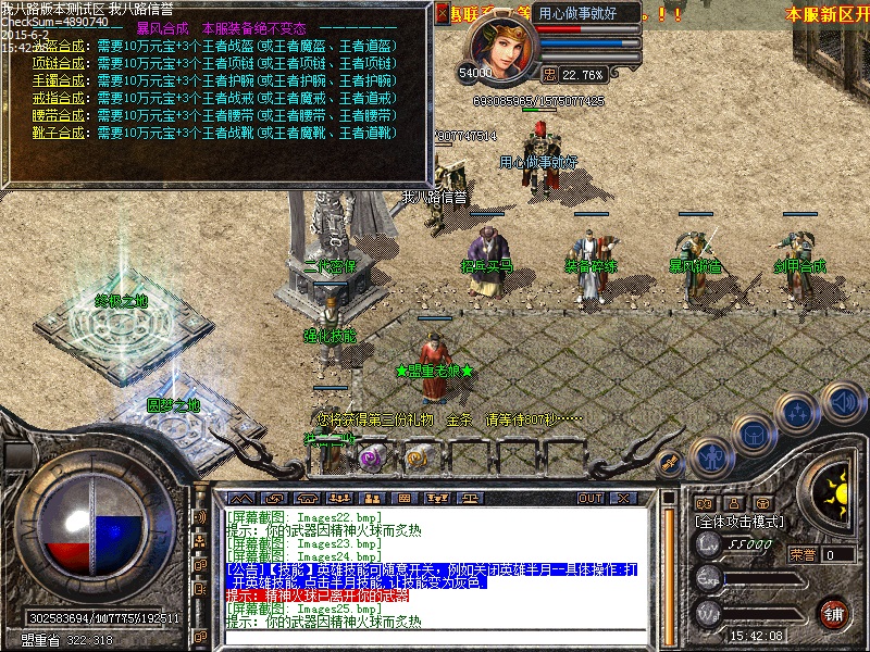 欢迎进入传奇一条龙99%仿盛大1.85王者合击无GM管理模式,不变态适合长期散人玩家。冲值元宝可在网站上自行冲值,无须等待!全面采用最新反外挂商业登陆器!同时警告那些使用非法加速外挂的玩家!一旦发现将永久冻结相关角色,永不恢复!请大家自觉!如果合区后帐号密码错误。请在登陆器查询帐号ID变更查询.会员之家狂雷系列爆率超高,新手装备即可进入杀怪,提升第一时间加入会员的玩家的起步速度!安全泡点,激情泡点,贵族泡点,卧龙挖怪,震远镖局,宫殿长廊,泡点地图均可以离线挂机.主号以及英雄护体神盾学过后,打怪跟PK会自动开启,只是平时不显示视觉效果!王者衣服+王者武器穿齐5%属性,王者首饰穿齐一套加10%属性,王者首饰加刀加衣服穿齐加15%属性!英雄技能可随意开关,例如关闭英雄半月--具体操作:打开英雄技能,点击半月技能,让技能变为灰色.新手进服,传奇一条龙建议首选盘古之地和王者禁地,其次装备之地其他地图.无任何GM联系方式,无任何优惠活动,需要冲值的玩家到官网进行冲值。推出装备淬练系统,90%成功几率.玩家可以去试试!王者武器和王者衣服,只在78级地图BOSS怪物身上暴出!王者首饰:任何地图的BOSS怪物均可以爆出,爆率超高!装备之地-完美世界-终极之地-东海龙宫-天涯之路-蔓陀山庄-神道天途,各地图终级BOSS,爆本服高级装备。新区第二天拿沙奖励为:30万元宝,请城主在拿沙结束以后!在盟重领取元宝!皇室令是进入78级地图的必要通行证明,在会员之家和魔法结阵爆出!藏宝图001-010可以合成天龙印,藏宝图011-020可以合成神龙印!技能书籍可以在尸王大殿爆出!新添加终极之地爆本服终极装备快快进入.