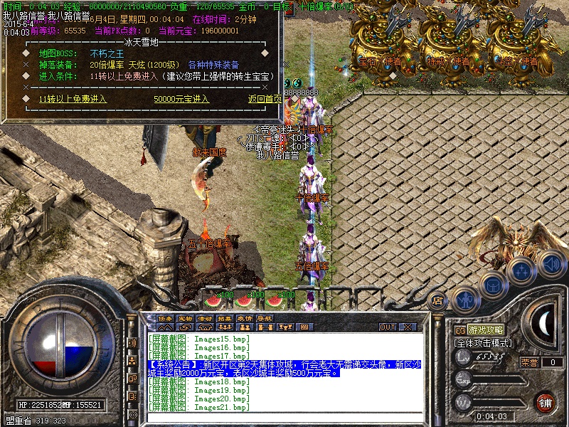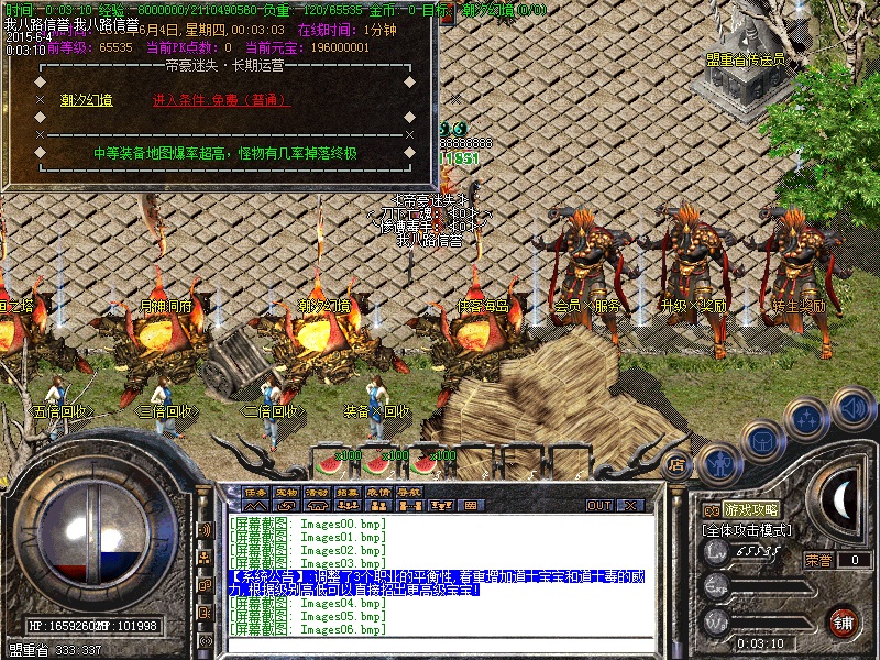 欢迎来到帝豪迷失独家超变传奇服务端,装备好打,活动超多,上手容易,PK非常激情,花小钱是爷,花时间就是神!网银1:20万 点卡1:18万 短信1:10万!传奇服务端各个安全区自动喊话的NPC都是假的,系统喊话是红字和蓝字,所以请玩家特别注意不要上当.传奇服务端技术调整了3个职业的平衡性,着重增加道士宝宝和道士毒的威力,根据级别高低可以直接招出更高级宝宝!新区开区第2天集体攻城,行会老大无需递交头像,新区沙城主奖励2000万元宝,老区沙城主奖励500万元宝。传奇SF服务端转生系统共13转,前5转完全免费,转生后每转都可以获得相应属性点,转生后可获得强悍技能.详情请看转生仙子!装备加星直接点开包裹右下角使用初级魂晶进行升级!属性点很多加点非常累怎么办?按住CTRL键然后加点一次加10点哦!每日超多活动精细不断、乐趣不断,详情请查看热血传奇服务端土城活动使者。如果觉得砍猪很无聊可以进入等级竞技场,在里面杀人加一级,被杀则降一级,超级激情。土城每20分钟刷新一次“别杀我”,专爆烟花彩礼,经验超多!新增打工任务,只需要收集任务物品即可完成,元宝超好赚!新增修真仙人,修真升级完全免费,完成修真任务可以获得超多属性!新增神秘技能,传说中失传的神秘技能,绝对强大!每天13个活动不定时开放,让你玩活动都玩不过来,所有活动玩过什么传奇服务端装备都有了。