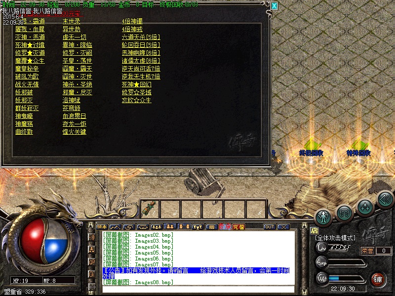 我八路传奇一条龙为你提供传奇开区版本亲测图,在这里你可以定制传奇一条龙套餐,还可以学习传奇一条龙开区的经验和知识,并由专业技术员为您提供“一对一”的售后服务,说到做到才是足于传奇一条龙开区工作室的根本。