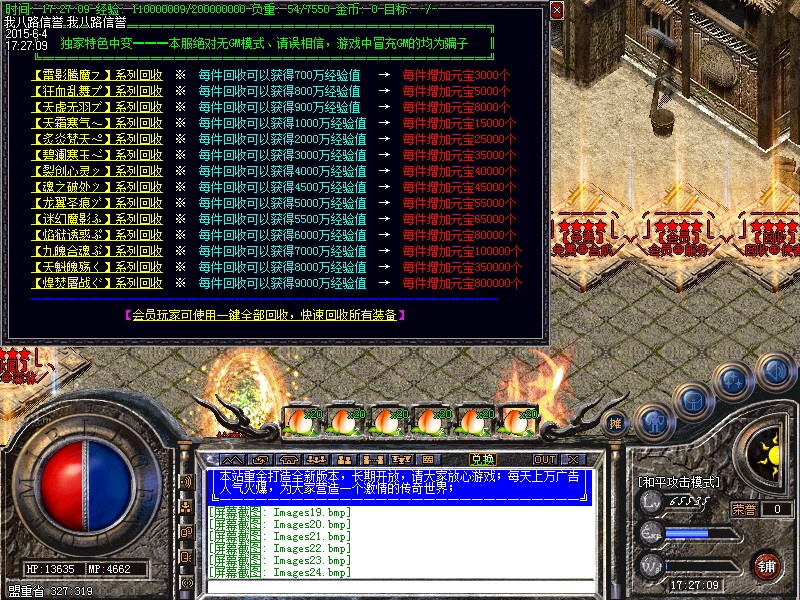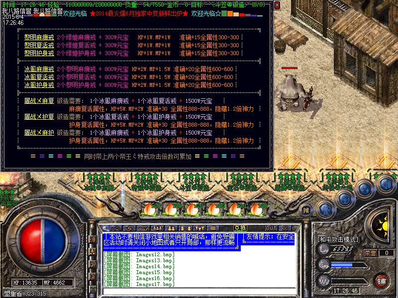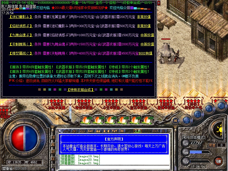 欢迎入驻独家中变靓装传奇服务端所有地图装备爆率都超高,元宝回收最给力!是RMB和非RMB的天堂,人气很重要,激情更重要!免费泡点也可泡到顶级,终极装备BOSS可爆出!无GM模式,请在传奇sf服务端下载完整补丁体验游戏乐趣。禁止建立空白人物名,会不定期删除空白名人物,禁止加速外挂,开外挂加速系统检测到就进监狱![中变版本]----屠战中变靓装|赤霄神盾|酒仙九幽|龙威雷旋|离魂皇城|HEROM引擎。