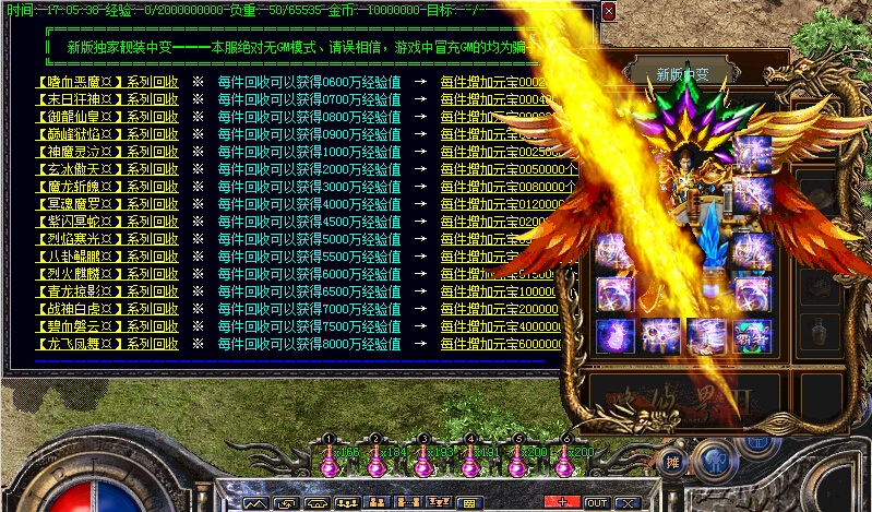 传奇SF服务端散人玩家可以回收装备获得元宝和经验,一样激情;大家千万不要浪费那些小额的元宝卷,积少成多嘛。传奇一条龙管理提醒玩家不要相信游戏里相关销售的喊话,避免受骗。在安全区活动时请关闭小地图或者只开局部,那样更流畅。