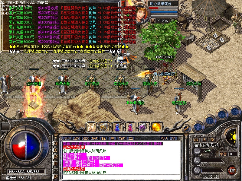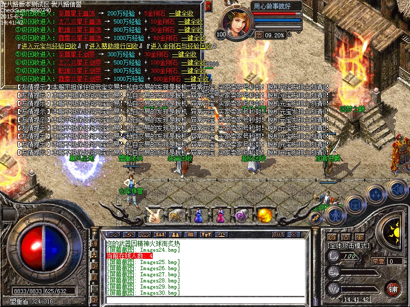 本传奇服务端不担保一切元宝交易[注:私下交易元宝如果查到是脱机直接封买家与卖家号-请知晓]脱机来的元宝随机查属异常秒封号。传奇SF服务端爆率已重做,装备绝对好打,等级越高-装备越好打,不好打直接退服即可,这次修改的爆率,绝对好打,传奇一条龙公司请各位玩家互相转告。