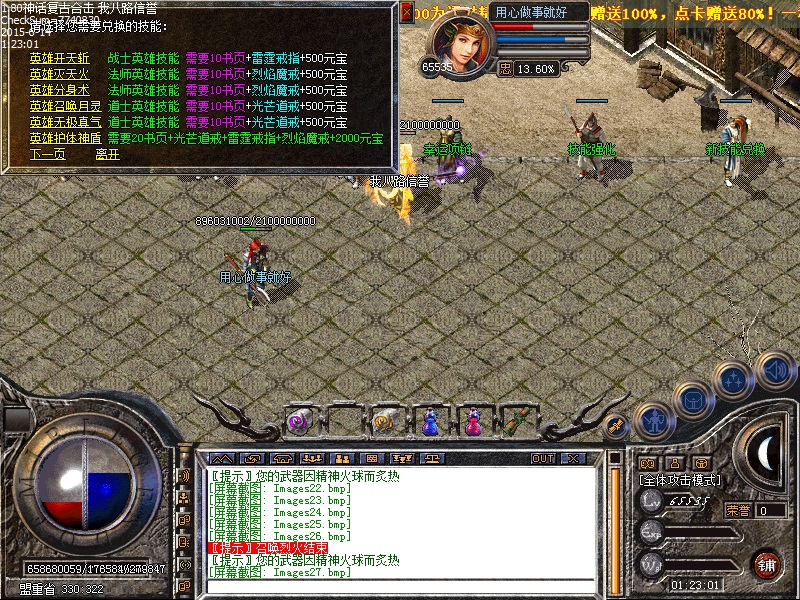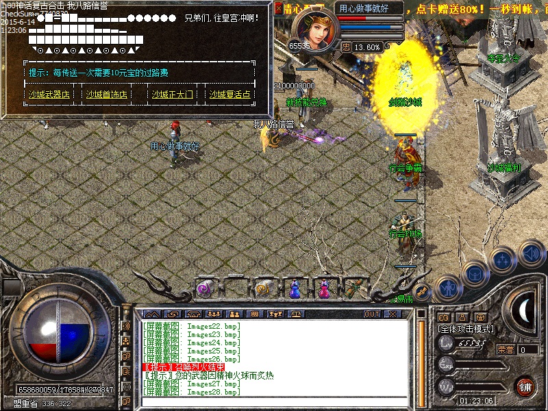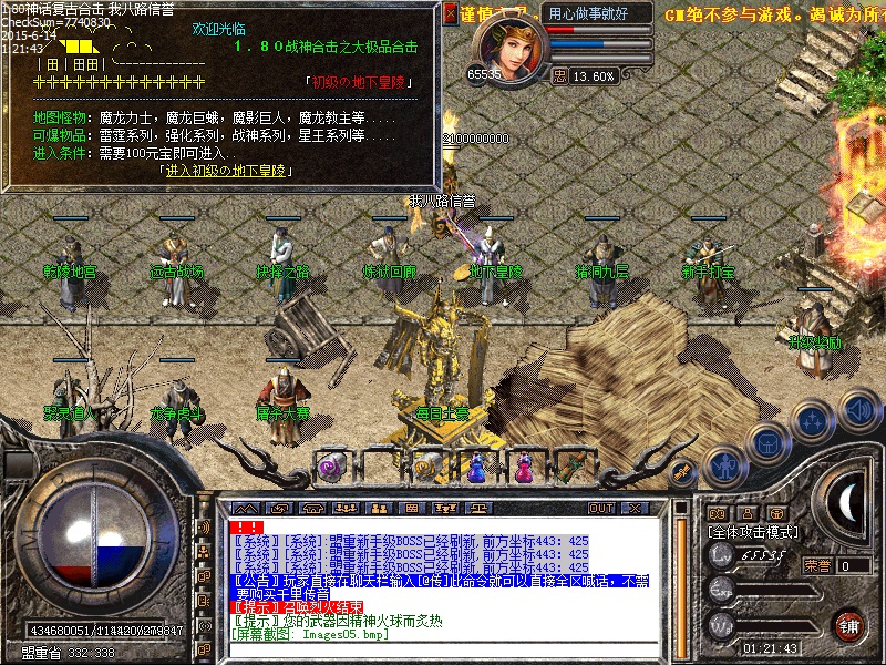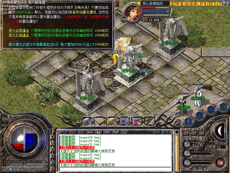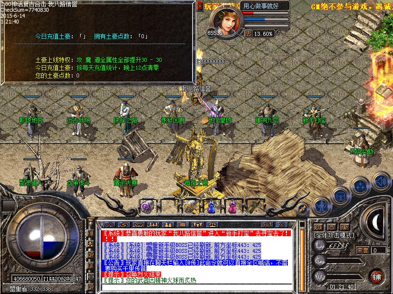 传奇服务端装备由沃玛→祖玛→赤月→雷霆→战神→星王终极 所有装备全部爆。一条龙技术新增高级boss,新地图,新体验,BOSS打不完,全部低价传送,散人好混。新区第三天20点抢夺沙巴克,奖励80000元宝,老区天天拿沙奖励80000元宝,传奇一条龙服务欢迎各位玩家。