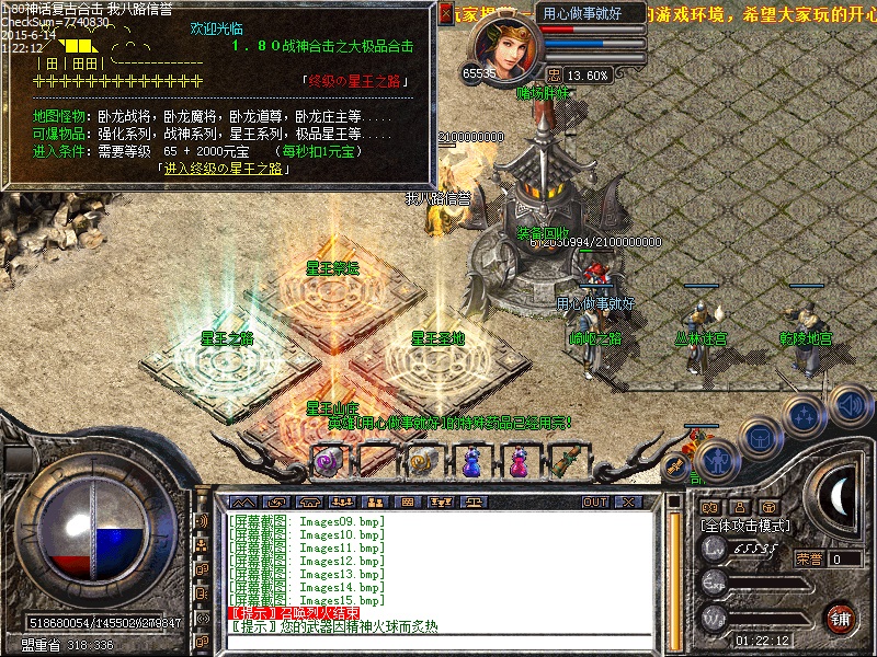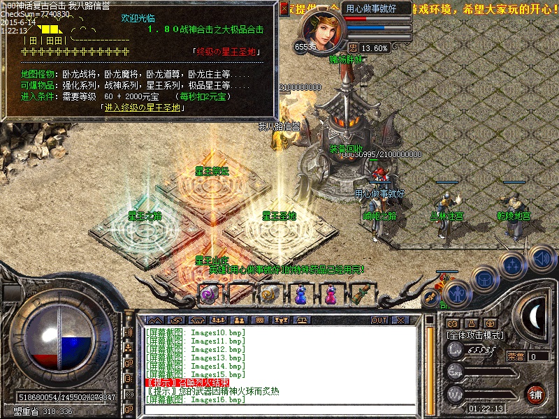 180复古合击传奇一条龙,一切靠打,等级靠练,长期耐玩。开放四级技能,合击技能,技能酷眩、威力无比。幸运9套发挥最高攻击,传奇sf一条龙游戏任务超级多,活动强调大。三大职业,六项组合,各有千秋,职业相互制横,PK激情无限。[80合击]----昔日神话复古合击|星王山庄|星王之路|亁陵地宫|崎岖之路|野外BOSS|BLUE引擎。