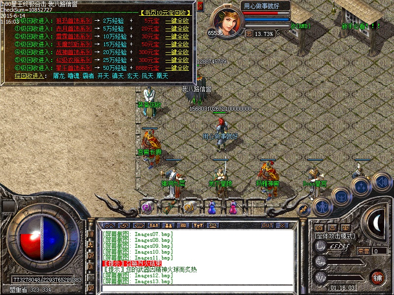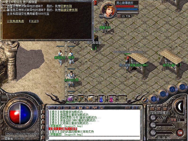 欢迎进入80星王终极合击传奇一条龙,元宝比例:短信1元=200元宝,点卡赠80%,网银1元=400元宝[冲值送装备封号,详情了解--冲值介绍--NPC]。[80合击]----星王终极合击|十二生肖|奔跑吧兄弟|抢水激情|山海迷窟|BLUE引擎。
