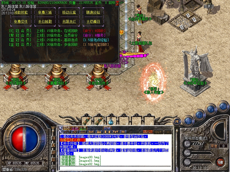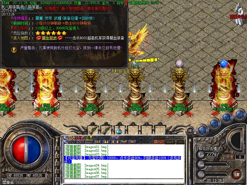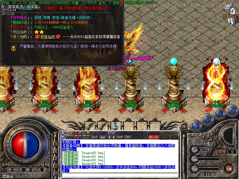 最新传奇一条龙清尘微变靓装版龙血禁地,本服地图超多.装备超靓.活动精彩.人气火爆.长久稳定、PK超激情,元宝比例1:10000,点卡多送90%,网银多送100%(多充多送),玩家如果新区与老区帐号一样:只需要在帐号后面加a、b、c、或重复几个依次排列下去即可!开传奇一条龙清尘微变靓装版龙血禁地-HERO引擎。如果玩家帐号是满的,后面不可以再加的时候,把最后一个数字或者字母去掉,再加a、b、或者c即可。问鼎版本相信很多人玩过,此次全新问鼎,增加特色,增加超亮装备,增加BOSS多。本传奇服务端每天多区,开区第二天合区集体攻城,奖励[1000W元宝],老区天天攻城,每天奖励[1000W]元宝,激情在合区后。感谢大家降临小弟的服。请不要开挂。开脱机。一切为了长期打算。传奇一条龙服务承诺终极必须有爆,爆率超级低,本服最后几个地图可爆出。