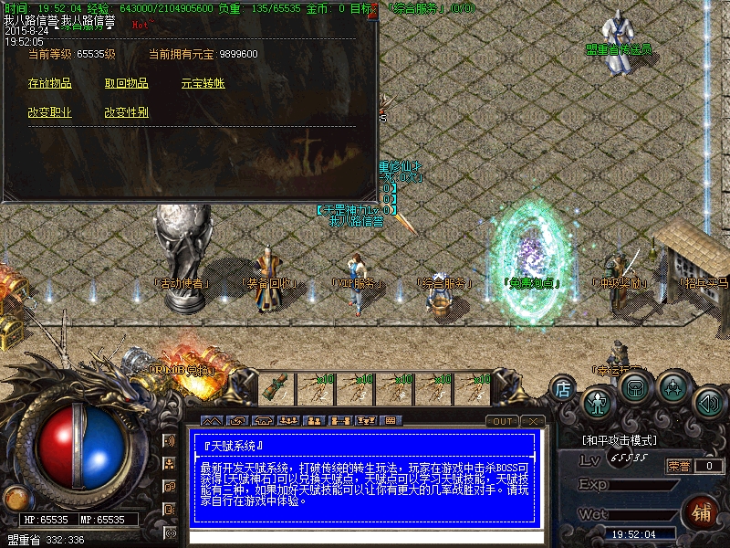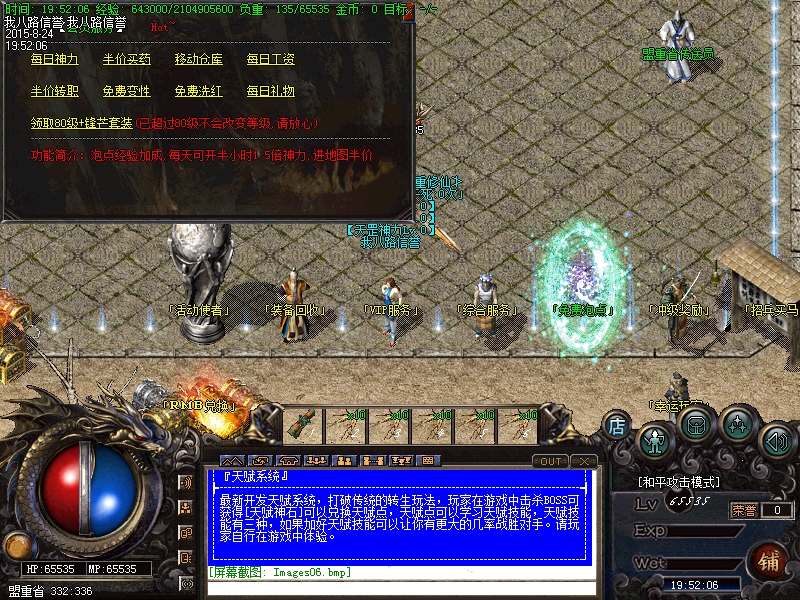 我八路传奇一条龙为你提供传奇开区版本亲测图,在这里你可以定制传奇一条龙套餐,还可以学习传奇一条龙开区的经验和知识,并由专业技术员为您提供“一对一”的售后服务,说到做到才是足于传奇一条龙开区工作室的根本。