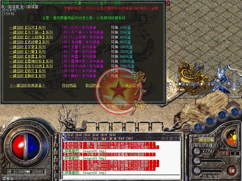 我八路传奇一条龙为你提供传奇开区版本亲测图,在这里你可以定制传奇一条龙套餐,还可以学习传奇一条龙开区的经验和知识,并由专业技术员为您提供“一对一”的售后服务,说到做到才是足于传奇一条龙开区工作室的根本。