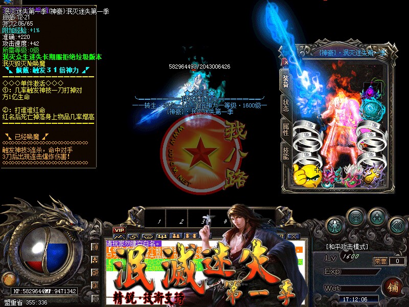 盛大传奇独家泯灭众生迷失.此传奇版本是经过专业团队,过硬的技术。耗时3个月呕心沥作。免费送会员,在线88分钟领取会员,会员免费五转,每日工资30W元宝,在线回收,2个会员地图,免费泡点泡到800级,命运之书吃到1000级,逆天果可以提升1200级,满级1220级。等级非常好混.本服满转二十五转,转生需要转生证明,转生证由所有地图怪物爆出。