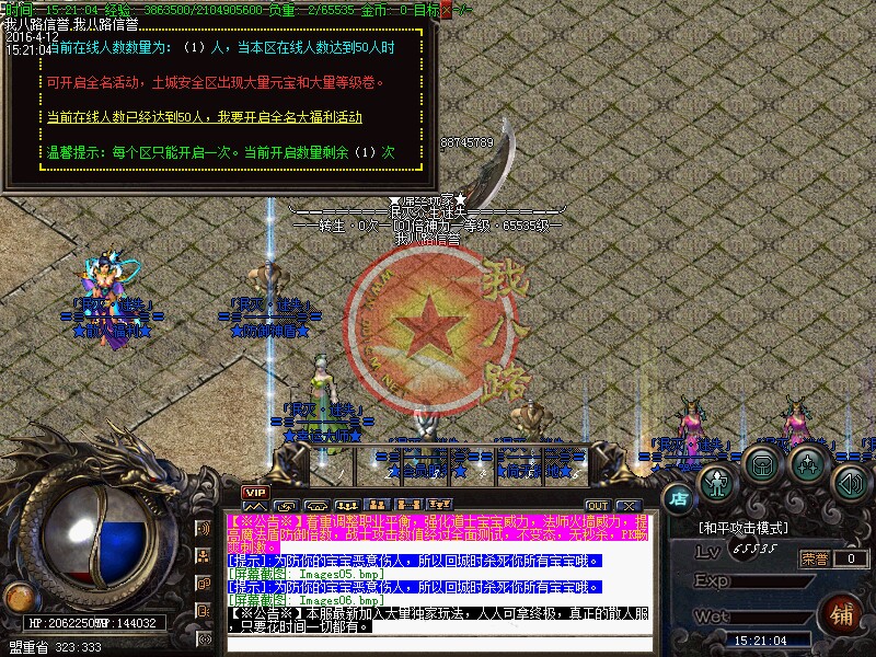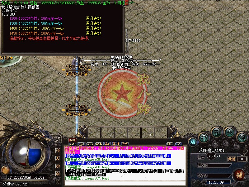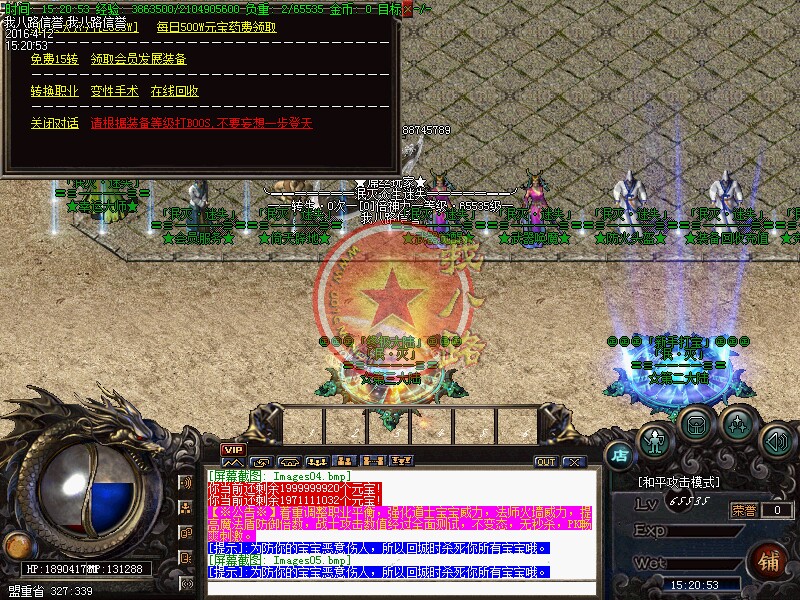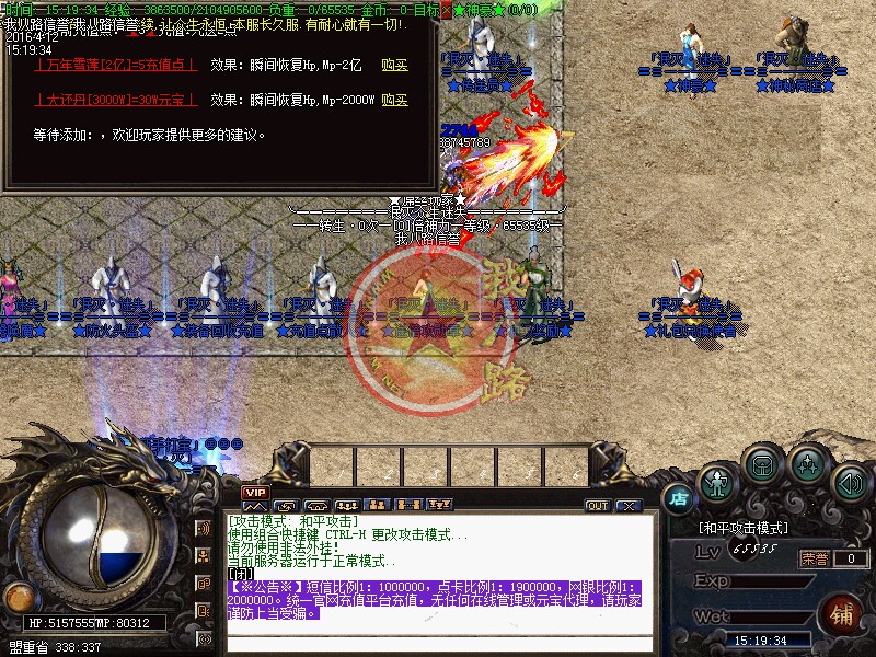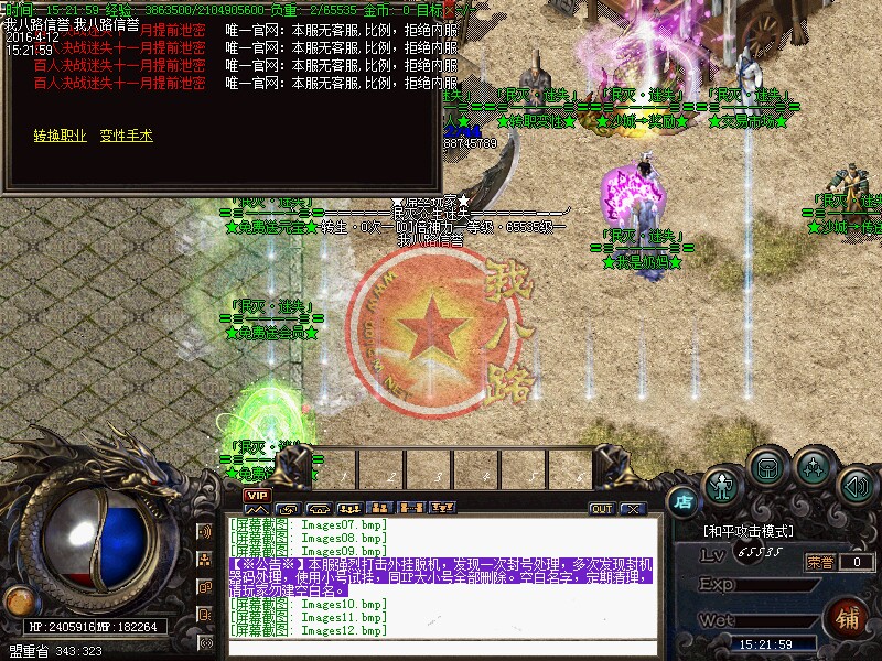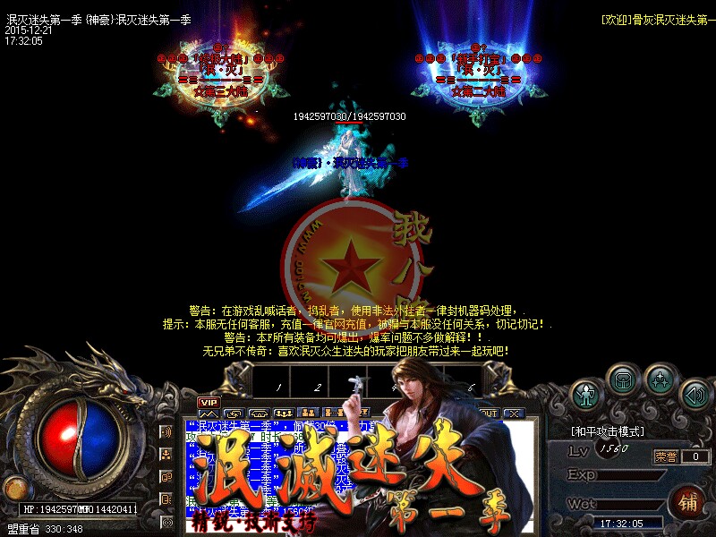 传奇一条龙泯灭众生独家迷失版,新区免费活动超多,终极装备与人民币直接在游戏活动BOSS中可以爆出,奖励人人可抢。传奇一条龙服务提醒合区后帐号错误,请在帐号后加a,如果仍然有误,则改为加b、c、d,若帐号长度已满10位,无法在后面加字母,则将最后一位改为a、b、c、d多试几次。本服严厉封挂。开挂者一律封IP。删数据库。还玩家一个绿色环境。全新的活动。全新的任务。用心为散人打造。让您不花钱也能玩出激情、玩出心跳。