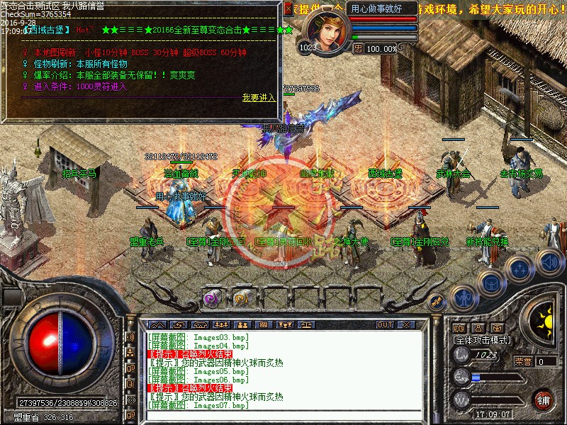 传奇开区一条龙版本1.80合击至尊变态版风云争霸修罗领域。每天稳定开放5个新区 保证人气 第三天中午合区 第三天集体攻沙,所有装备,包括终极装备都有爆!设计了BOSS地图,散人玩家的天下[不花钱一样牛逼,BOSS多地图多.血越多的BOSS爆率就越高.(斗笠勋章不爆)装备无合成。