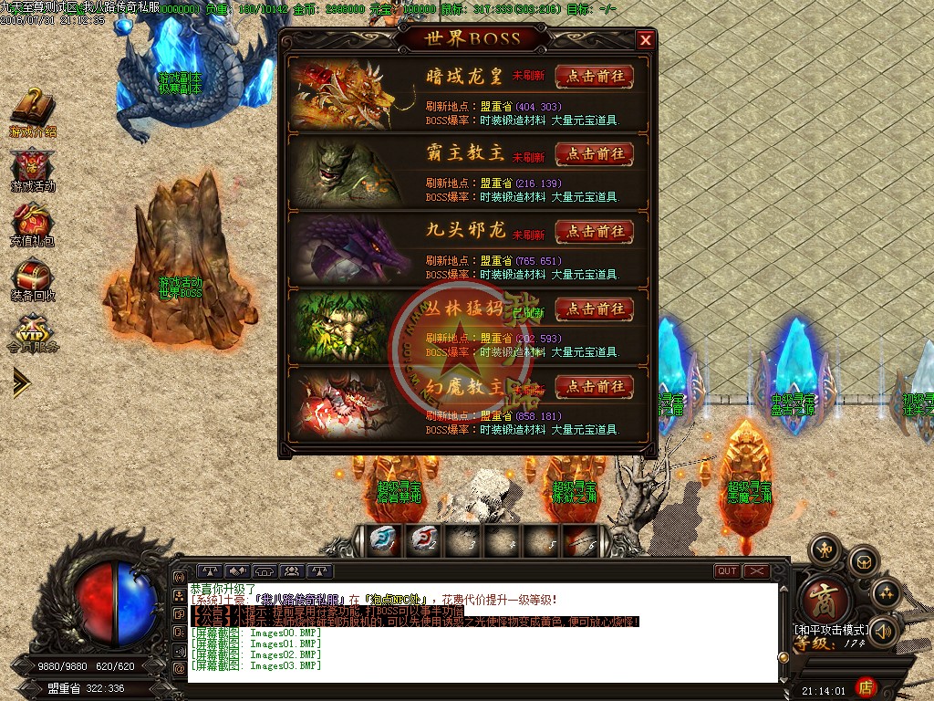 本服次终极与终极套RMB回收,每周一全天统一回收!部分玩家被恶意劫持打不开登录器,下载360急救箱强力查杀即可,传奇一条服务小提示:世界BOSS.(暗域龙皇)刷新时间:早上9点.(霸王教主)刷新时间:中午12点.(九头邪龙)刷新时间:下午4点.(丛林猛犸))刷新时间:晚上8点 (幻魔教主)刷新时间:晚上24点,小提示:道士召唤宝宝提示:新手可召唤道宠·火灵  130级可召唤道宠·恶灵  160级可召唤道宠·浪淘沙.提前享用符篆功能,打BOSS可以事半功倍,36,0]小提示:法师烧怪碰到防脱机的,可以先使用诱惑之光使怪物变成黄色,便可放心烧怪!请勿在内挂里设置隐藏其他效果,将分别不出正常怪物与脱机怪物,否则封号后果自负!本服战法道三职业平衡.各有各的用处.各有各的千秋.请玩家自行体验!元宝比例:1=10000 点卡赠送80 网银赠送100%  唯一充值渠道请登陆本服官方网站进行充值、切勿相信游戏中所谓比例的骗子!微变传奇游戏第一品牌 九天传世火爆上线 散人为天 元宝回收装备 无任何装备合成 无任何隐藏消费 攻沙奖励300元元宝!请查看传奇一条龙套餐