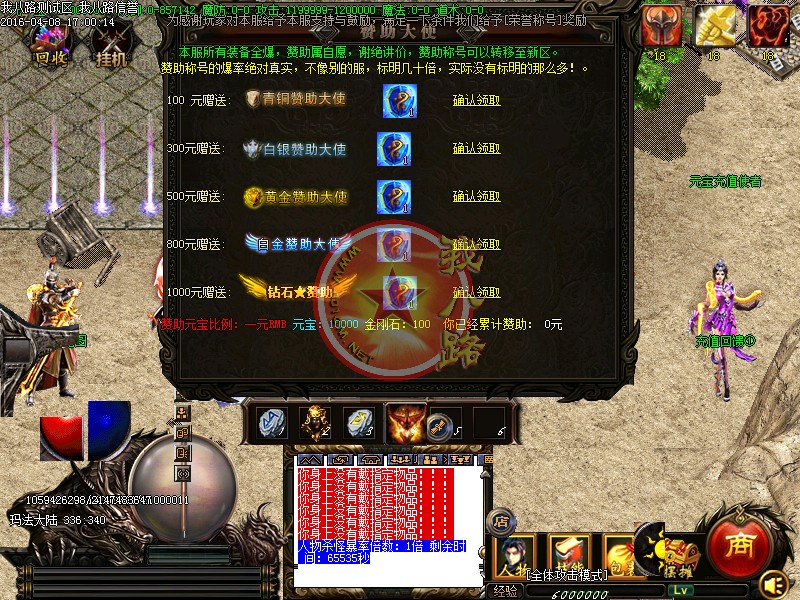 <151,249>【赞助系统】:为保持服务器和广告支出开销特设定赞助奖励爆率系统,真是有效,感谢大家对本服的支持与厚爱,公平.公正.公开是我们的宗旨。