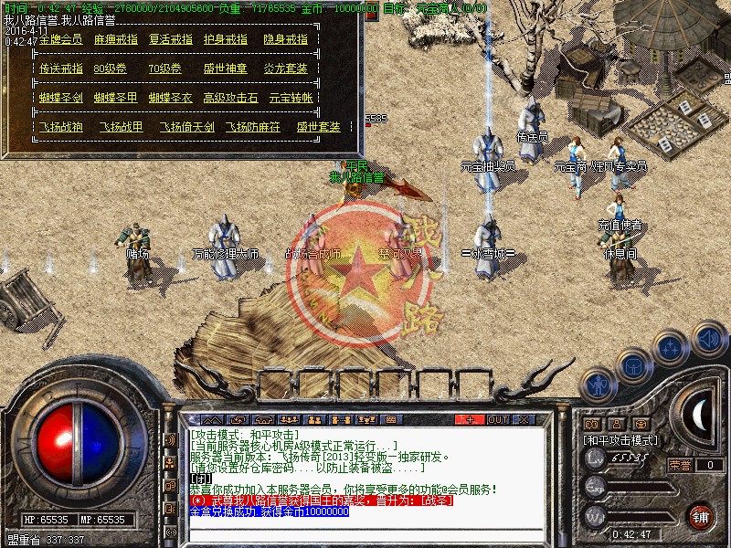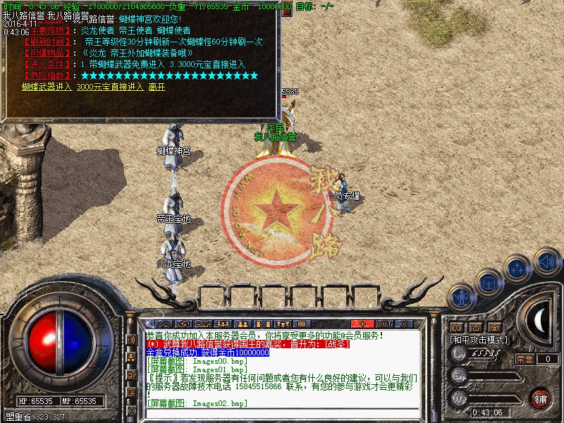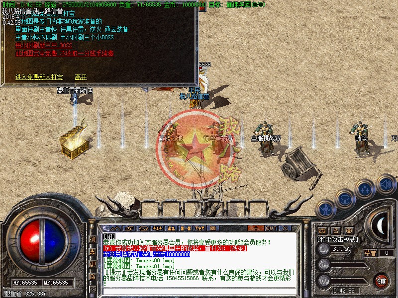 打造绿色网游.人气创造激情.比一比看一看还是激情最重要.浪费您1分钟宝贵时间.随便进去看看.如若没激情或是装备不好暴 .您可以马上退服.本服千元广告区区暴满.区区活人百家以上.谢谢您的支持!郑重声明.本服坚决维护游戏公平.保障玩家利益.只卖元宝.无GM.无客服.家族无任何待遇.本站投资大量资金努力为玩家打造优质游戏环境.公平销售.所有玩家一律使用在线充值系统.注意.如果您对版本还不熟悉.请先花1分钟看以下详细介绍.盲目的玩会落后哟!本服禁止使用 近身秒杀挂 变态外挂等 后台发现攻击超速 直接封ID IP 无解释!请大家绿色游戏!