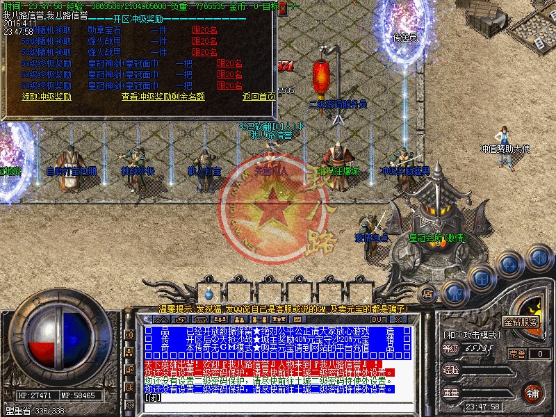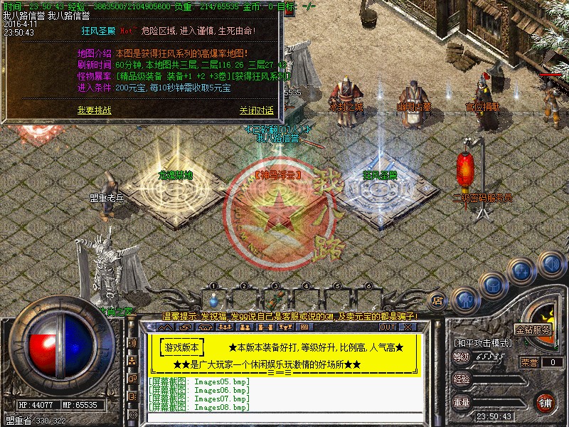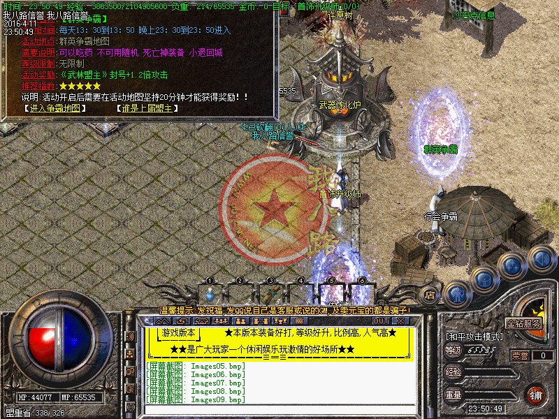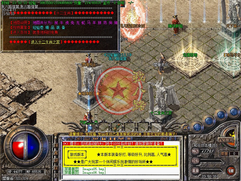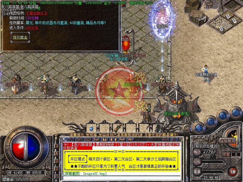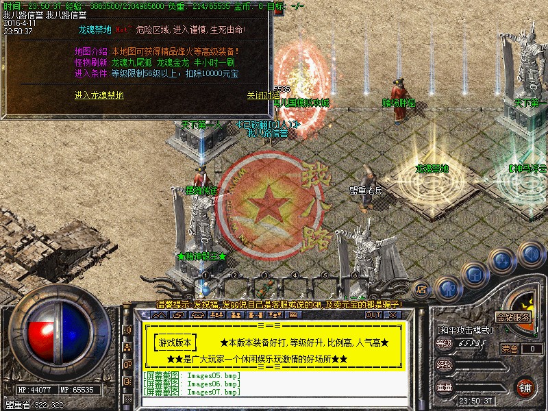 本游戏传奇一条龙技术更新了防外挂系统,配合防外挂登录器封闭了市面上95%的外挂,请玩家放心游戏!执迷不悟者封号处理!本服务器拒绝家族,47级号抢沙之间禁止登陆、禁止外援!开区第2天统一拿沙,占沙行会奖励40万元宝!登陆本服务器需要专用登陆器,否则不能登陆,是为了禁止外挂的出现,登陆器按F12呼出自带内挂,封穿人穿怪。本服务器禁止任何外挂,取空白游戏名字,发现空白名字或外挂者,不管是否花钱,立即永久封号。