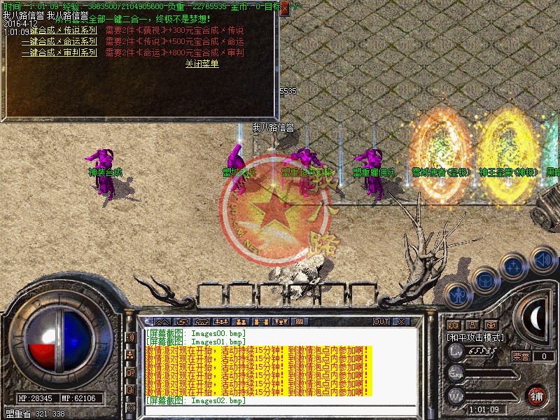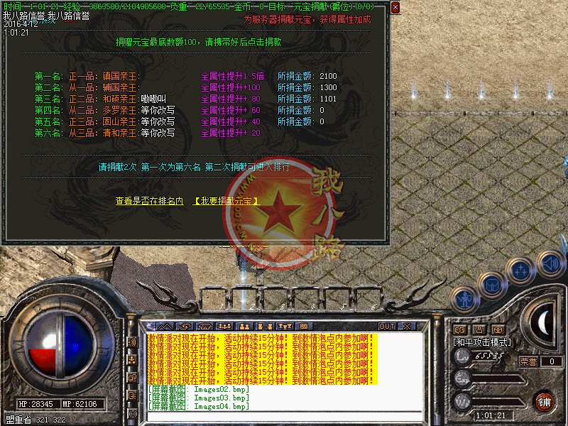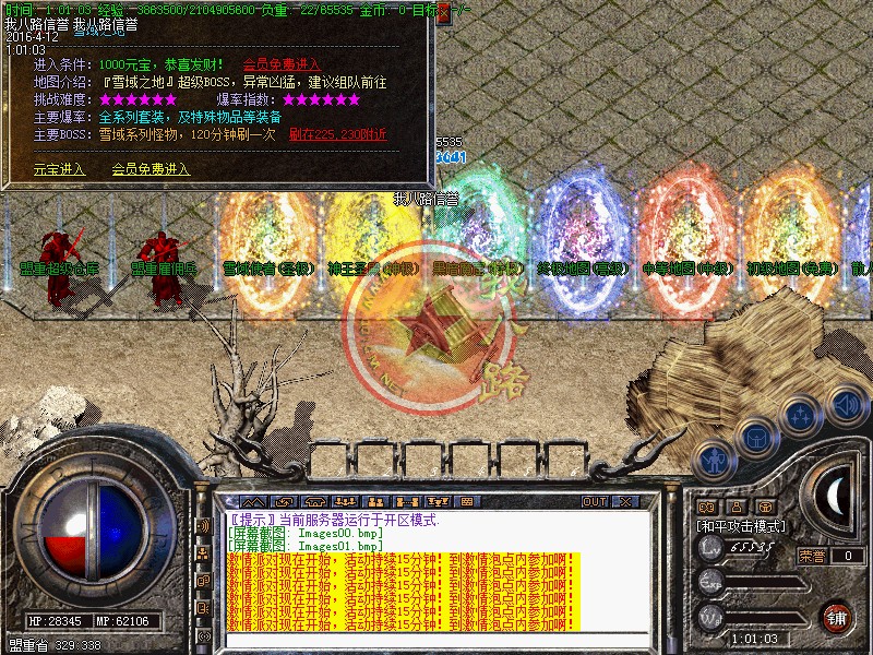 独家雪域龙影二合一传奇,每日8-10激情不断绝不乱合区,合理跨服!此传奇版本历经三个月制作精心设计平衡了三职业的玩法.属性爆率都是经过严格测试.不变态不秒杀.连体广告,人气爆棚,BOSS多不难打,刷新快,所有装备全部都爆!突破传统技能三级限制,职业技能最高可强化至4重,绚丽奔放,绝对吊炸天!传奇一条龙技术设置每天开放5个-10个新区(第2天合区拿沙奖励5万元宝.老区拿沙奖励2万元宝)。1:100元宝 点卡赠送80% 网银赠送100% 单笔充值满50以上有额外赠送 统一平台充值.无GM管理模式,全新封挂网关能做到彻底100%封挂封脱机。