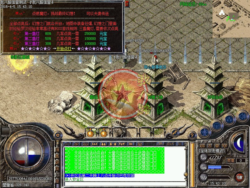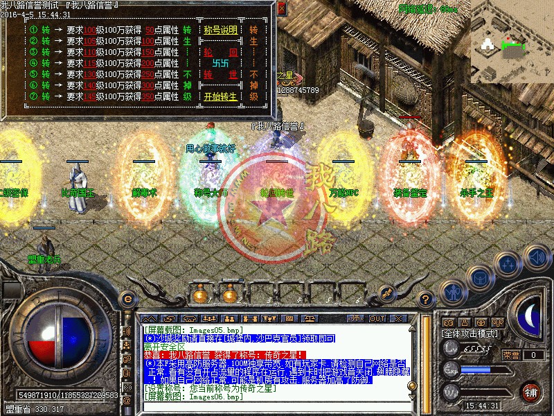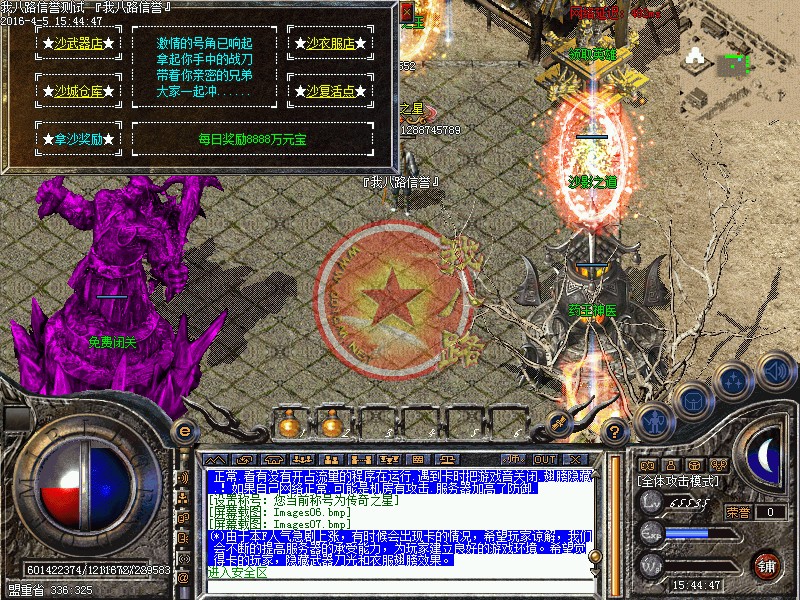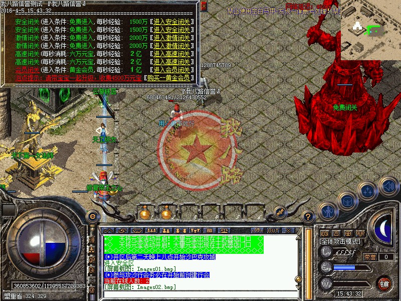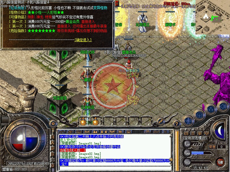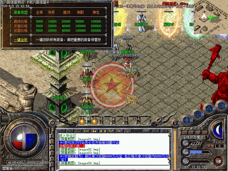 本传奇游戏合区后发现账户如果登录不上,请在账户后面加a.b.c...,如果是十位账户的请去掉最后一位然后加上a.b.c...,密码保持原来的不变,信誉传奇一条龙服务为了游戏质量,本服定期维护服务器!维护时间提前通知,到时请留意公告通知!维护期间为了保证玩家的利益,请玩家提前一分钟下线,不便之处,请多多谅解,谢谢合作!攻城奖励为:新区拿沙奖励8888万元宝.老区每天拿沙奖励为8888万元宝希望觉得卡的玩家,隐藏武器刀光和衣服翅膀效果。本F采用高防服务器.100M独享带宽.如有玩家卡.请检测自己网络是否正常.看有没有开占流量的程序在运行.遇到卡时把游戏音关闭.翅膀隐藏.!如果自己网络正常.可能是机房有攻击服务器加高了防御.。由于本F人气急剧上涨,有时候会出现卡的情况,希望玩家谅解,我们会不断的提高服务器的承受能力,为玩家建立良好的游戏环境。希望觉得卡的玩家,隐藏武器刀光和衣服翅膀效果。本服人人都能满级,皓月爆率高,在刺影地图,狐月地图,盛大新城都能打到,只要你花时间保证能带上刺影套!