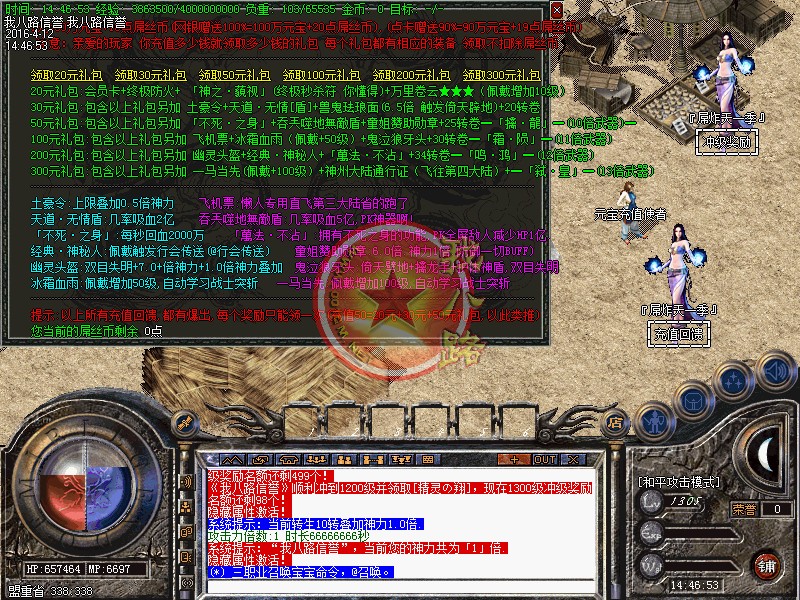 本传奇版本三职业召唤宝宝命令,@召唤。传奇一条龙会员随时随地命令,@会员。打响第一炮(屌炸天迷失一季)耗时3月独家打造,元宝比例;1:50万,点卡多送90%,网银多送100%(多冲多送),新手上线,@召唤,召唤本服唯一终极宝宝(群攻麻痹),新手,散人,0级地图,兜一圈,前期什么都有了。