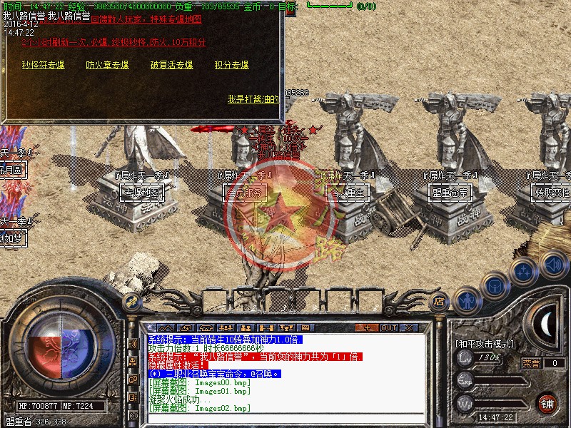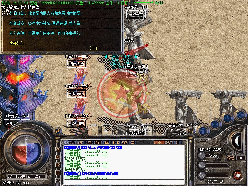 散人不花钱只要你是骨灰打够一定的积分便可以进入第四大陆,那么你就在里面一天终极套了,遇到爆不爆你知道·我知道 这些怪千万不要错过哦!因为他们什么都爆的哦!本服终极宝石,佩戴,增加4000万HP,附带破复活属性,带上它,让你没有任何后顾之忧任你翱翔,本服终极面巾:兄弟情谊我永记,佩戴自动学习行会召唤技能,任何地图都能传送,需要过多解释吗?最后说一句,打怪不要越级打,一步一步来才是硬道理,本服就是看脸服,谁脸好,谁打出来终极装备,本服终极项链分为四个等级.佩戴+5级.佩戴+10级.佩戴+50级.佩戴+100级.呵呵只为激情而,本服童姐赞助勋章位终极勋章.可以防御怪物的一切BUFF.推.拉.弹.唱.而且具有神力叠加倍数哦.本服终极头盔具有让对方打入双目失明的状态.倍数神力更不用说.全部叠加.本服满神力叠加最高25倍,武器、衣服、项链、头盔、首饰、宝石、勋章全部叠加神力。本服所有装备全部爆出,无任何合成NPC,还是一句话,我待散人如初恋,希望散人别骂我千万遍,谢谢!我八路传奇一条龙制作了很多独家版本.被很多盗版狗模仿.但是都得不到玩过正版玩家的乐趣.欢迎盗版狗来模仿!转生37转,等级1300级,佩戴终极项链,可以达到1400级,满血在29亿左右,不秒杀,也不会打不死人。