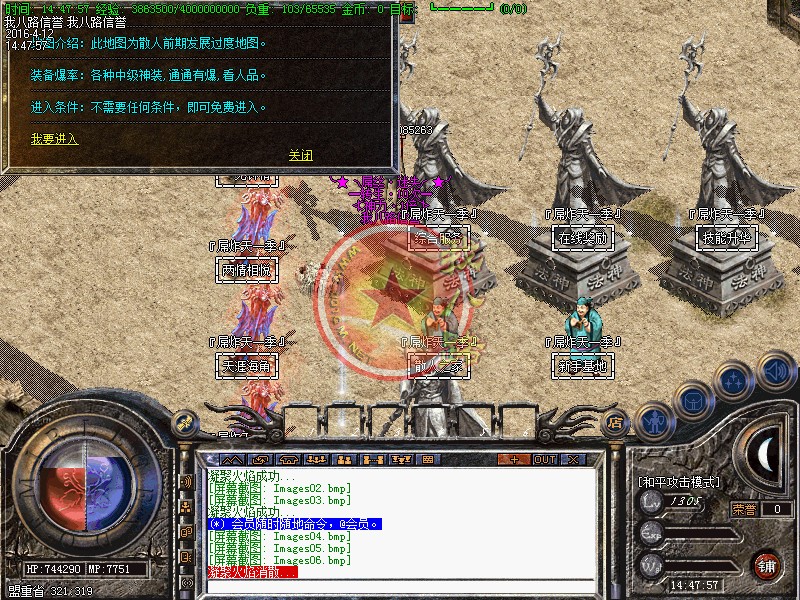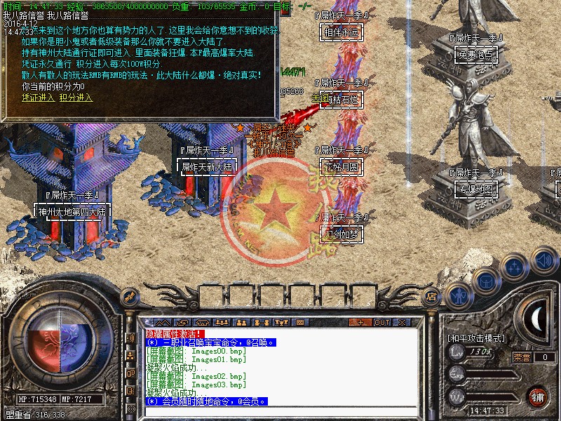 本服有四个大陆.新手可以进入第二大陆狂打装备.也可以跑进第三大陆.第四大陆使用积分或者通行证进入,散人跑第三大陆,设在屌丝会所的楼梯上,通道每秒扣血2000万,体格太弱的就别去了,
