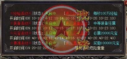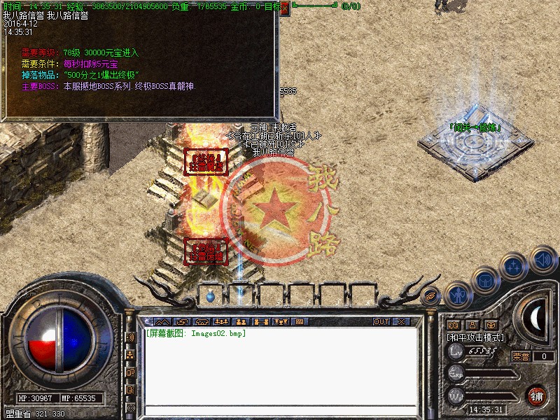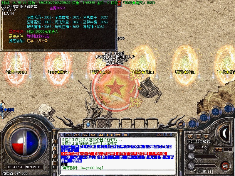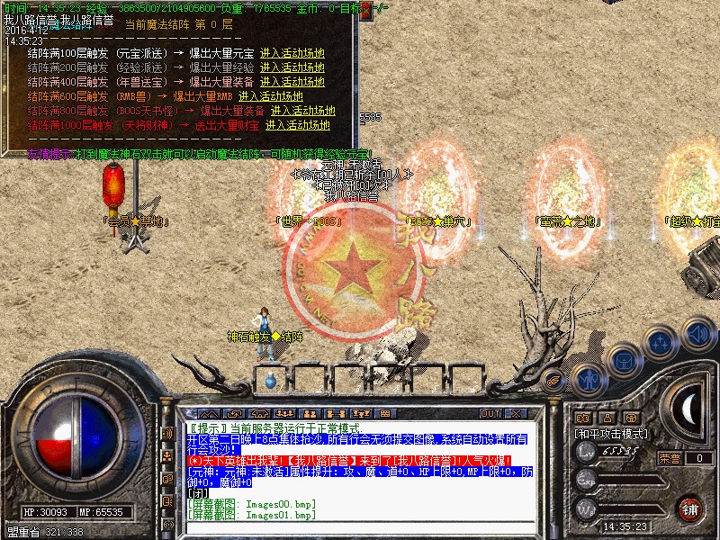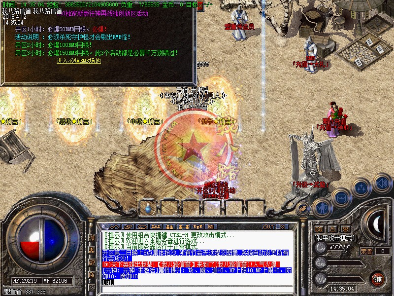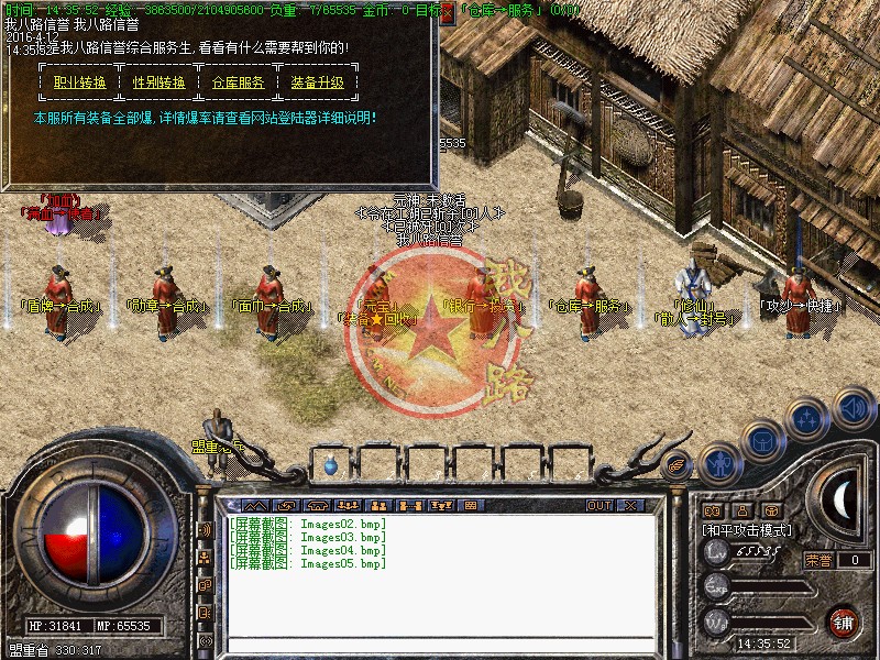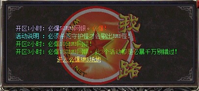 欢迎大家进入信誉传奇一条龙1.80战神游戏,短信充值1=5000,点卡类多赠送80%,网银支付宝赠送100%,请大家踊跃参加!新区第2天拿沙,冲级奖励【拿沙之前】请查看综合服务NPC.本区元宝就是钱 钱就是元宝  装备很珍贵!请大家小心保管帐号装备!系统消息:更加适合散人长期玩家!拒绝家族!发现马甲超过10个相同的!给予删除!
