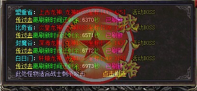 本服80级封顶,游戏名字取空格者删除帐号,谢谢大家合作! 180战神再战,传奇一条龙工作室开发最少半年之久!错过此服,在等半年! 所有新区攻城奖励200万元宝. 激情多多,散人自行体验!!好服难求,元宝好打,终极好暴,长期稳定,绿色游戏,散人天堂!本传奇版本击杀BOSS全服通告,可自动获得元宝,RMB,(大小BOSS都有获得,越高级BOSS获得奖励越丰富),只做精品更新介绍: 大小怪物都可以暴元宝,人民币,不会乏味,只要你肯花时间不花钱照样当爷!打造无传奇sf一条龙客服参与!!无比例!!无团队!真心玩此服者进!散人轻松日赚300元绝非吹牛,谢绝快餐玩家 重大通知: 每天稳定开放新区! 一个星期为一个战区。