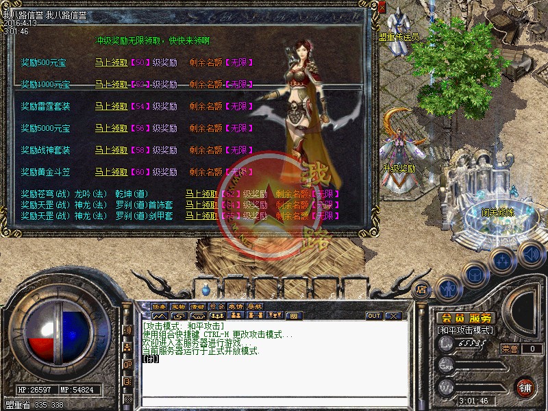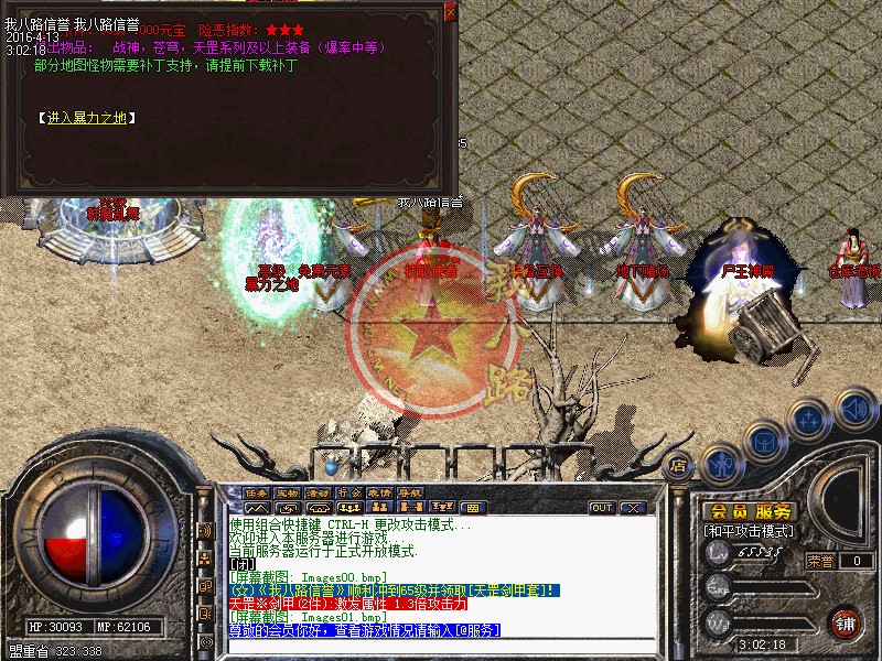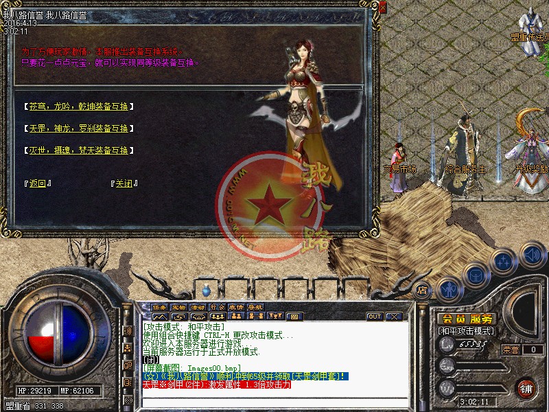 此传奇版本为最新经典微变,历时半年精心打。本服3大特戒,都是免费获得,镇妖塔顶的黑暗帝王,爆出封印特戒,可以到土城封印使者处免费解封,绝对可以免费获得。本服回收比例很高,有时间就会有一切,希望玩家多多介绍朋友来玩。不要相信以任何方式在游戏里出现的管理QQ,全部是骗子,谨防被骗。