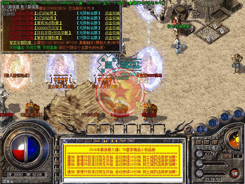 2016年强力打造皇家1.76精品小极品,极品狂暴,运⑨好搞 十倍回收 等级好升 !传奇一条龙技术新增特色地图,适合散人打宝,组队混终极装备!散人不花钱一样混的好 !进入任何地图打宝都会增加大量经验,让升级,打宝同步进行,真正为玩家考虑 !全新皇家精品,运9套好搞 +8+9小极品 非常好爆 独家升级。游戏乐趣更多,适合散人团队发展,散人玩家的天堂 !