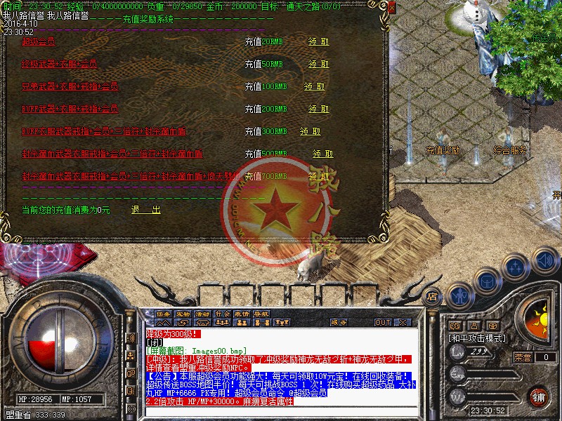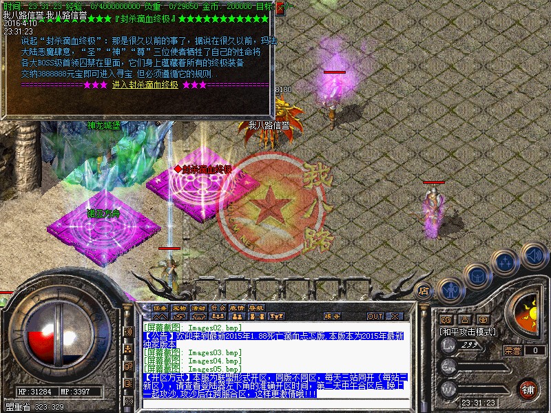 欢迎来到传奇开区一条龙最新1.88死亡滴血忐忑版,本版本为最新独家版本。本服超级会员功能强大!每天可领取10W元宝!在线回收装备!超级传送BOSS地图半价!每天可挑战BOSS 1 次!在线购买超级药品 大补丸HP MP+6666 PK专用!超级会员命令 @超级会员。
