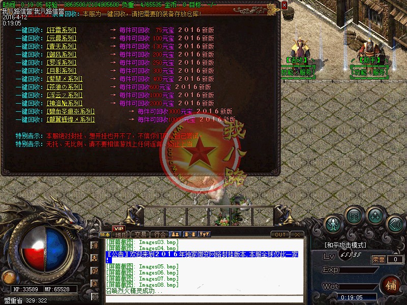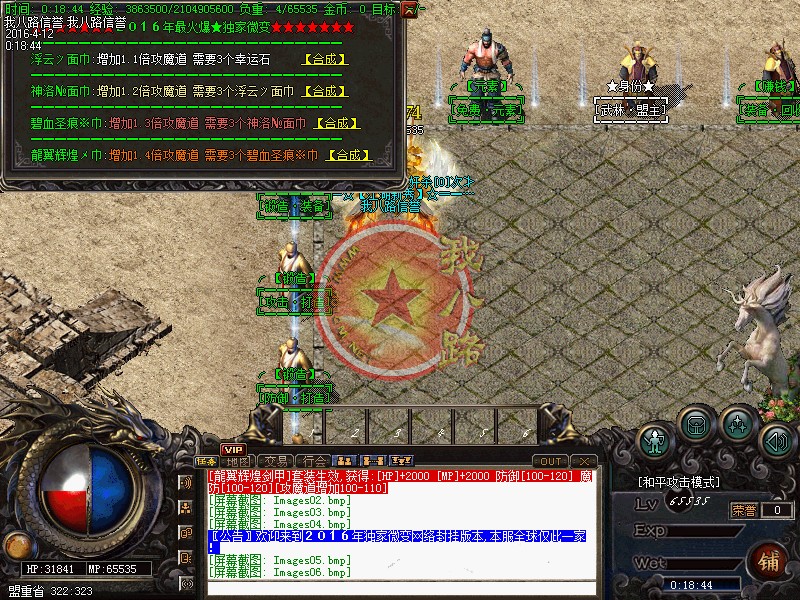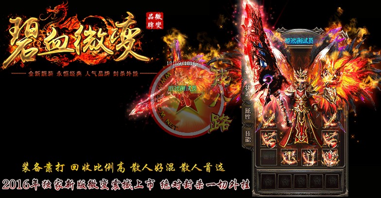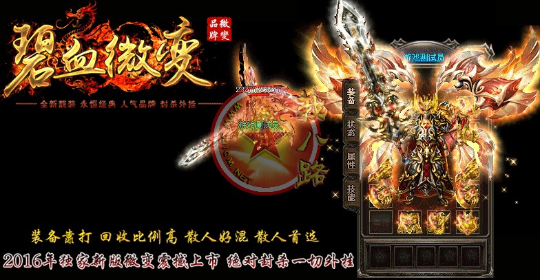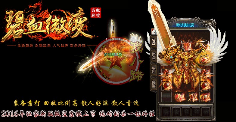 本游戏采用最新云端网关封挂技术,24小时再线查看外挂,让外挂无处遁形,让游戏回归绿色!新增特色传奇sf一条龙脚本地图,适合散人打宝,组队混终极装备!散人不花钱一样混的好!本游戏装备全爆-元宝好打,散人真正的天堂,只要有时间终极不用花一分钱搞到手,激情无限嗨嗨嗨!开区第二天攻沙,首攻奖励350万,老区奖励150万.无限激情!