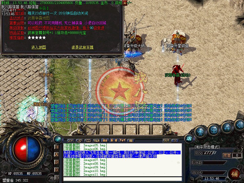 欢迎进入我八路传奇一条龙传奇游戏,我们力争保证:公平,公正,公开,认真对待每个玩家,任何破坏游戏平衡玩家.一律严惩不贷、开外挂的玩家一律关监狱处理.需要高额保释金才能重新获得自由!使用脱机外挂一律封号并追究大号!每天11点 15点 21点 24点 开放酒馆活动,可从土安全区左下角进入,杀害酒馆老板娘后保护虎谷酒10分钟可获得奖励20W元宝!传奇一条龙服务提醒谨防利用游戏喊话冒充客服的骗子!本服无任何客服QQ与电话,无GM在线,任何冒充GM的全是骗子!玩家因此被盗号或被骗装备的,概不负责。