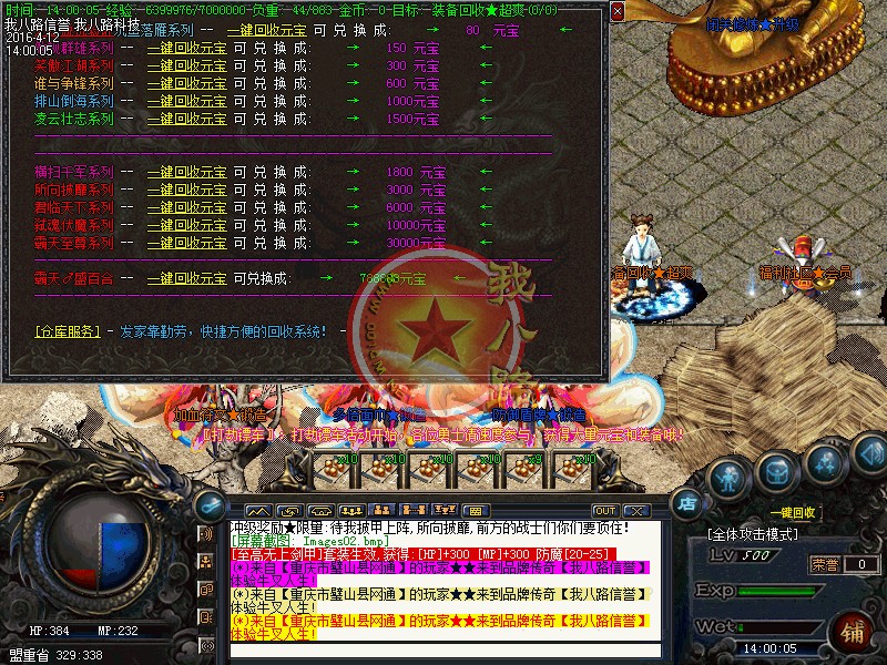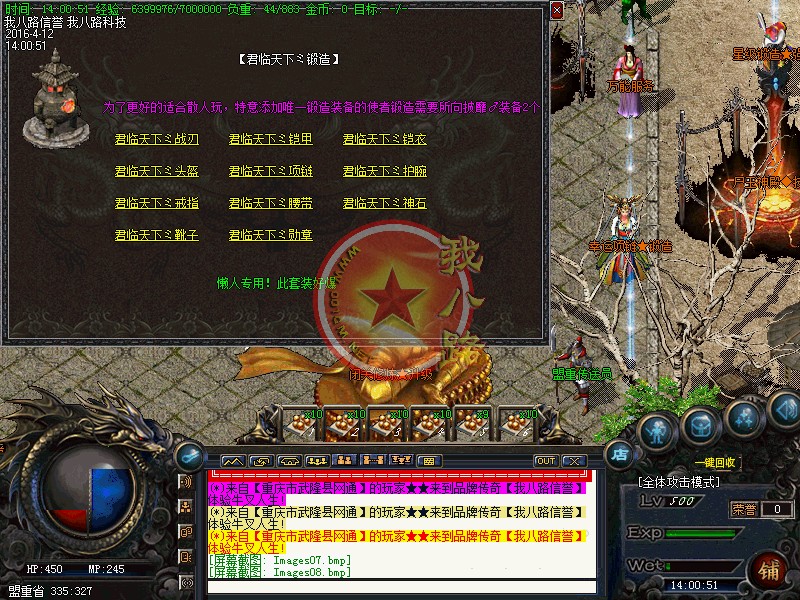 我八路传奇一条龙为你提供传奇开区版本亲测图,在这里你可以定制传奇一条龙套餐,还可以学习传奇一条龙开区的经验和知识,并由专业技术员为您提供“一对一”的售后服务,说到做到才是足于传奇一条龙开区工作室的根本。