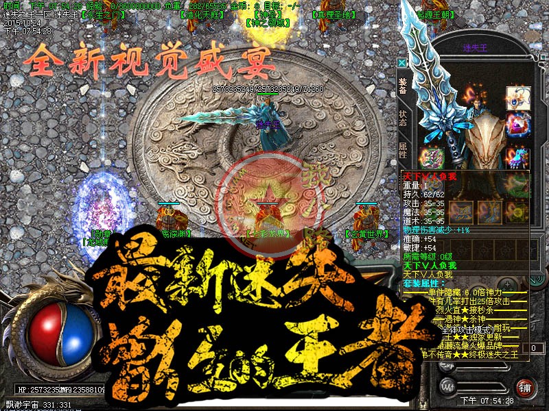 皇图靓装迷失耐玩传奇没有任何隐藏消费。本传奇版本取消所有兽王地图  普通玩家上线可以每秒10亿经验,至尊会员玩家每秒20亿 秒升800 只为激情。本服取消所有转身物品 至尊会员送23转,散人地图最高爆出27转 ,转身全部只要金刚石!上线就送贵族会员免费18转,传奇一条龙至尊会员送23转,起步更快!更激情!2个特色红名地图也是必抢之地 (1个爆装备 1个爆金刚石100RMB的元宝),每日更有天下第一武道会 19点开启 19点30关闭 进入此地图强制全体模式PK!最后存活可获得2万金刚石奖励 相当于1000RMB 。