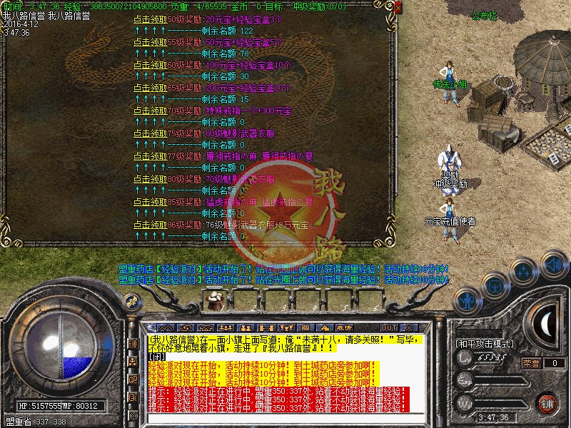 本F开区第3天攻城,第一次攻城奖励20000元宝,接下来每天攻城奖励8000元宝....本服三职业平衡道士50招麒麟 60级白虎 65级招5级白虎 70招7级白虎两个75级招飞天神兽 80级 土城扛把子(超猛)80级无法无天(超超猛)85级霸王龙(超超超猛)90级终陈浩南(超超超超超猛)!服务器爆率随时变动,传奇一条龙只要你运气好小怪也可爆出终极,不相信的请随时关注物品提示。服务器会不定期的清理小号,放装备的小号请高于35级!消灭比奇省428:474处的万年树妖,即可开启全服的桃园副本活动...增加套装属性:影魅武器衣服60、70、76分别触发1.1倍、1.2倍、1.3倍攻击 ;朱天武器衣服1.4倍,血染系列武器衣服1.5倍;具体属性自己探索。每晚10点后不定时怪物攻城,BOSS爆率惊爆你的眼球;传奇开区一条龙每两小时屠杀经验宝宝活动,箱子让你拣到手软;每隔1小时元宝树降临土城,必爆高级玄晶和大量元宝以及经验宝盒;每晚19点的武林大会让不起眼的你鹤立鸡群,武林盟主的待遇更是无可挑剔;下午13点的跑步活动带来的不仅是乐趣还是非RMB玩家的利益所在;土药每3小时虹膜教主送宝箱活动;每2小时年兽光临玛法,它可是带着一身极品的哦!