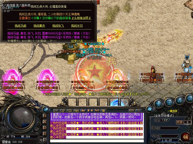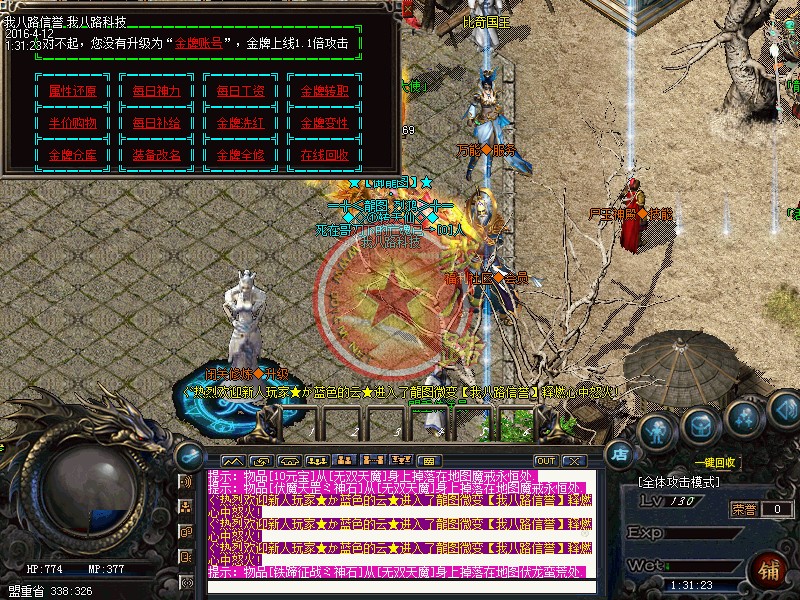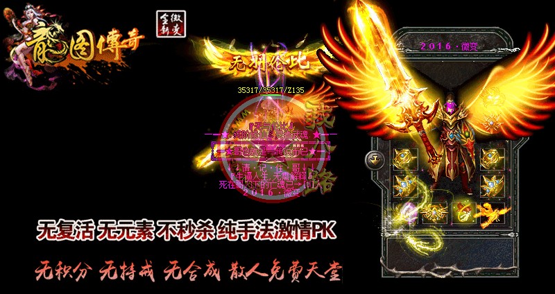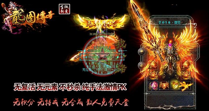 本服无GM,无客服,一切在游戏里喊话卖元宝的全部是骗子,请不要相信。开区第二天攻沙,奖励500万元宝+城主福利,老区天天攻沙,非常激情!无GM模式,官方网站:请到登陆器上找, 请下载完整补丁体验游戏乐趣,禁止建立空白人物名,会不定期删除空白名人物,禁止加速外挂,开外挂加速系统检测到就进监狱!传奇一条龙服务警告:本服已设置封一键回城,一键小退,自动检装备外挂,旦开了后台自动显示玩家名字,每天检查发现立马封号,打击外挂绝不手软,传奇开区一条龙提醒在本服不要存在侥幸心里。每晚上22:30分!超级活动百万豪礼!等级提升卷!赤灵丹等你来娶。每个地图新增必爆充值点BOSS!杀死必爆!每小时刷新一次。无特戒、无合成、无秒杀、免费升满级、在线回收、所有装备全部靠打,真正的一款绿色免费游戏!从55级开始每升5级就有一次相应的等级奖励,升级奖励非常丰厚!元宝比例 1:10000 点卡赠送80% 网银赠送100% 多充多送!游戏活动多多:激情派对,跑酷奖励,福利金猪,超级霸主,元宝福利等等。服务器采用最新引擎封挂,系统检测到外挂自动封号,永不解封!游戏中各大地图BOSS最少爆1-10万元宝、终极装备、终极材料、包括新手地图,高级地图爆率更加丰厚,只要你花一点业余时间就可以获得终极。