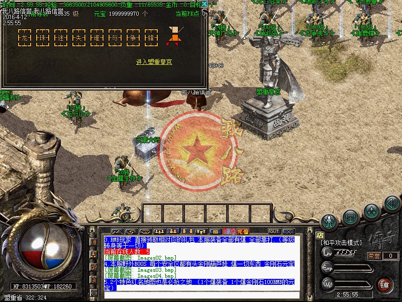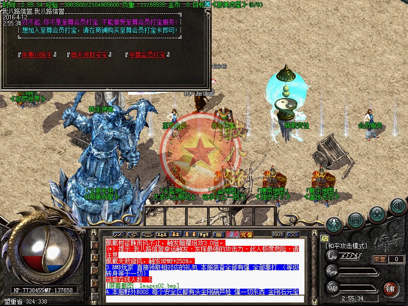很多人玩习惯了宝宝服 上来发现宝宝垃圾 就开始骂服 我们靠的是双手而不是宝宝 本服其实真的很容易玩 不需要你们去升级 在土城泡点半小时 就800级 领取所有等级奖励 就可以打所有BOOS 所有BOOS都爆转身卷轴 金刚石元宝。还有很多土豪也不知道玩 其实土豪是最简单的 土豪证明300RMB 有它就等于拥有一切 前期不要去RMB地图打 只需要去土豪地图(拉美克星)(飘渺宇宙)打人形怪 其他怪都不打 就打人形怪 有装备了 就可以打放火 (本服还是一样所有10亿以上BOOS装备全部都爆)。