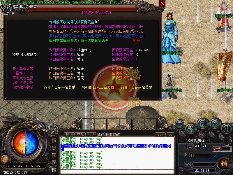 本服免费泡点也可泡到顶级,终极装备BOSS可爆出!本传奇版本所有传奇一条龙地图装备爆率都超高,元宝回收最给力!!!是RMB和非RMB的天堂,人气很重要,激情更重要!本服绝对无GM,无客服QQ,游戏里任何形式说自己是GM的全是骗子大家小心上当!一个好的游戏环境是靠大家维持的,破坏游戏,刷祝福喷人,盗号,骗装备等等一些小人手段,本GM一次面子不给,发现一次封整个网吧IP段请大家注意自己素质!希望广大玩家在开心之余,把对本服的建议给客服反馈一下,我们信誉传奇一条龙会一直改进,做到最好.我们珍惜每一位玩家,对所有玩家一视同仁,绝不偏爱任何一位玩家,GM不参与游戏,不参与玩家装备纠纷,员工道德投诉电话:, 欢迎大家登陆本服务器希望所有玩家提出宝贵意见,如果大家觉得本服务器好玩的话请互相宣传.每晚22:20一次超级活动!蒼龍骑士·魔会出现在沙复活 !大量宝物!千万不能错过.真正的超级活动.本服是无GM模式,传奇开区一条龙官方网站:请下载完整补丁体验游戏乐趣,本服禁止建立空白人物名,会不定期删除空白名人物,传奇一条龙套餐禁止加速外挂,开外挂加速系统检测到就进监狱!本服采用高端千M服务器,速度流畅,激情无限,新区天天开,惊喜天天有!