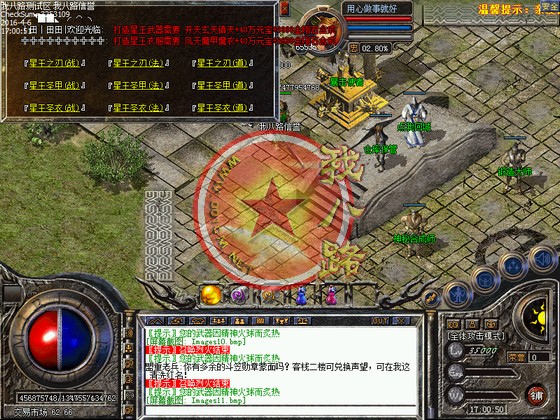 传奇一条龙新星王复古英雄合击版如果不能正常游戏。请更新盛大最新客户端再安装本服补丁。天黑路滑,社会复杂,请玩家谨慎交易!管理人员绝不参与游戏。竭诚为所有玩家提供一个公平、公正的游戏环境,希望大家玩的开心!玩的愉快!