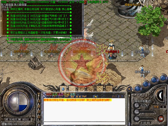 行者中变城堡争霸群英争夺战独创靓装传奇新区开区第2天集体攻城,行会老大无需递交头像,新区沙城主奖励10亿元宝,老区沙城主奖励5亿元宝。传奇一条龙各个安全区自动喊话的NPC都是假的,系统喊话是红字和蓝字,所以请玩家特别注意不要上当.本服唯一客服无GM 会员命令为:@会员。