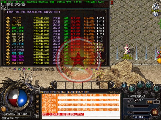 更新转生系统,转生后每转都可以获得相应属性点和封号,详情请看转生使者!本服在线回收装备命令@在线回收会员功能:一件回收,离线挂机,会员买药,获得盘古力量,会员天堂(爆率超高),会员练级,随身仓库免费洗红等等!!怪物爆出的经验和元宝自动入包,一定要捡哦。本服新区开区第2天集体攻城,新区沙城主奖励6000000元宝,老区沙城主奖励3000000元宝。本F所有装备均可在游戏中获得,越高级的装备暴率越低,但是绝对能暴,短期不能打到只是运气问题。看不到地图怪物的请在小窗口下载怪物补丁: 请下载完整补丁体验游戏乐趣。
