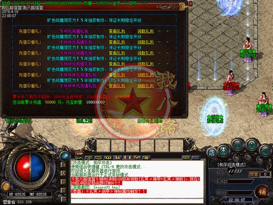 本游戏是一款无特戒,无秒杀的游戏,是真正意义上的微变版本,完美设置,以散人为核心,让游戏更加激情!游戏的升级轻松,可免费泡到顶,传奇开区一条龙服务建议买个会员双倍泡点!所有装备全部可以在游戏里获得,终极装备随手可得真的很爽!传奇一条龙技术采用目前市场上最新云端网关封挂技术,加上客服24小时再线查看外挂,让外挂无处遁形,让游戏回归绿色!新区第二天下午合区晚上集体抢夺沙巴克,奖励非常给力,老区每天拿沙奖励丰厚!元宝比例: 1:5000 网银赠送 100% 点卡赠送 90% 多充多送机制 !