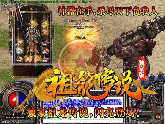 【本服特色】本服每个中后期地图60分钟刷新2--5只祖龙怪,必爆大量祖龙,散人逆袭不是梦!